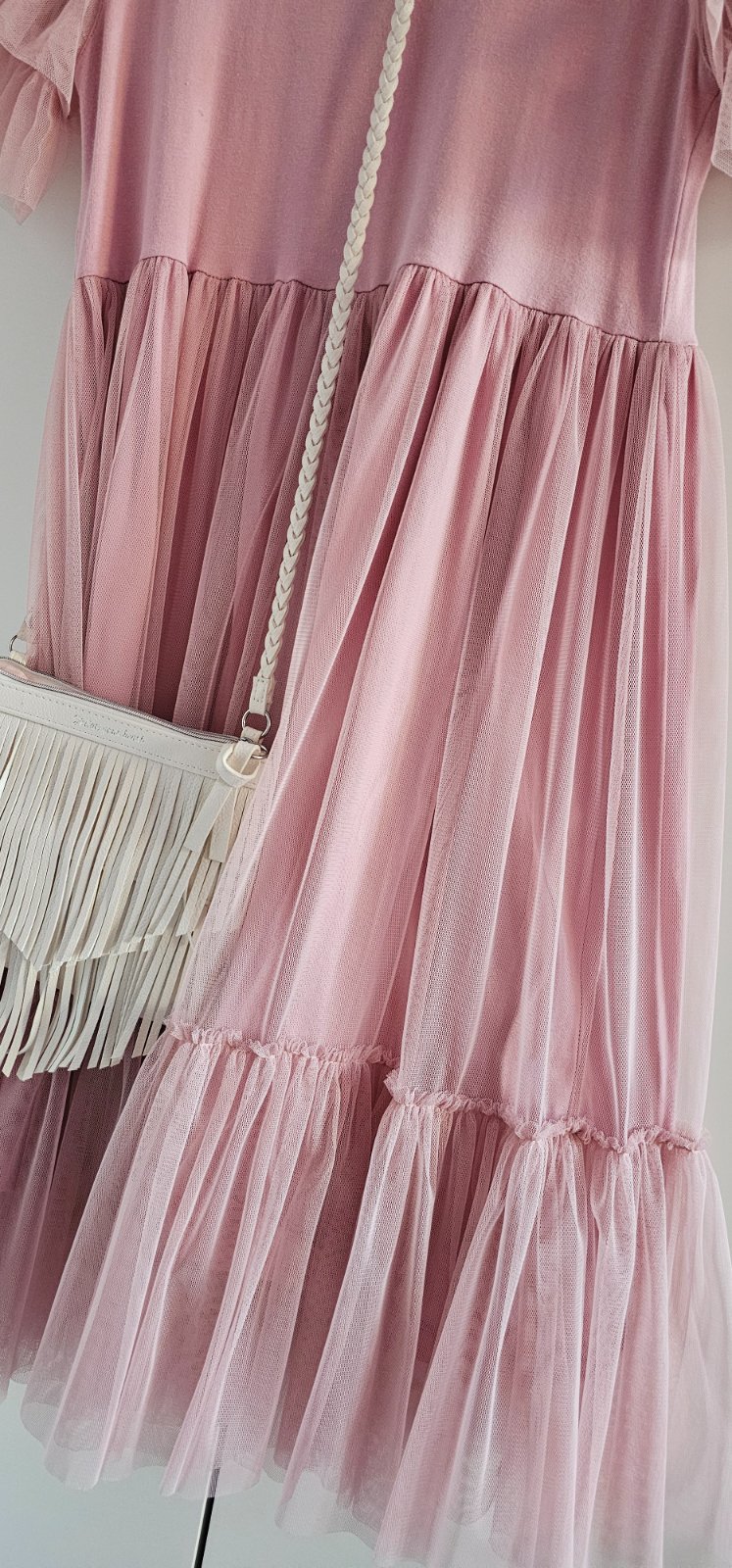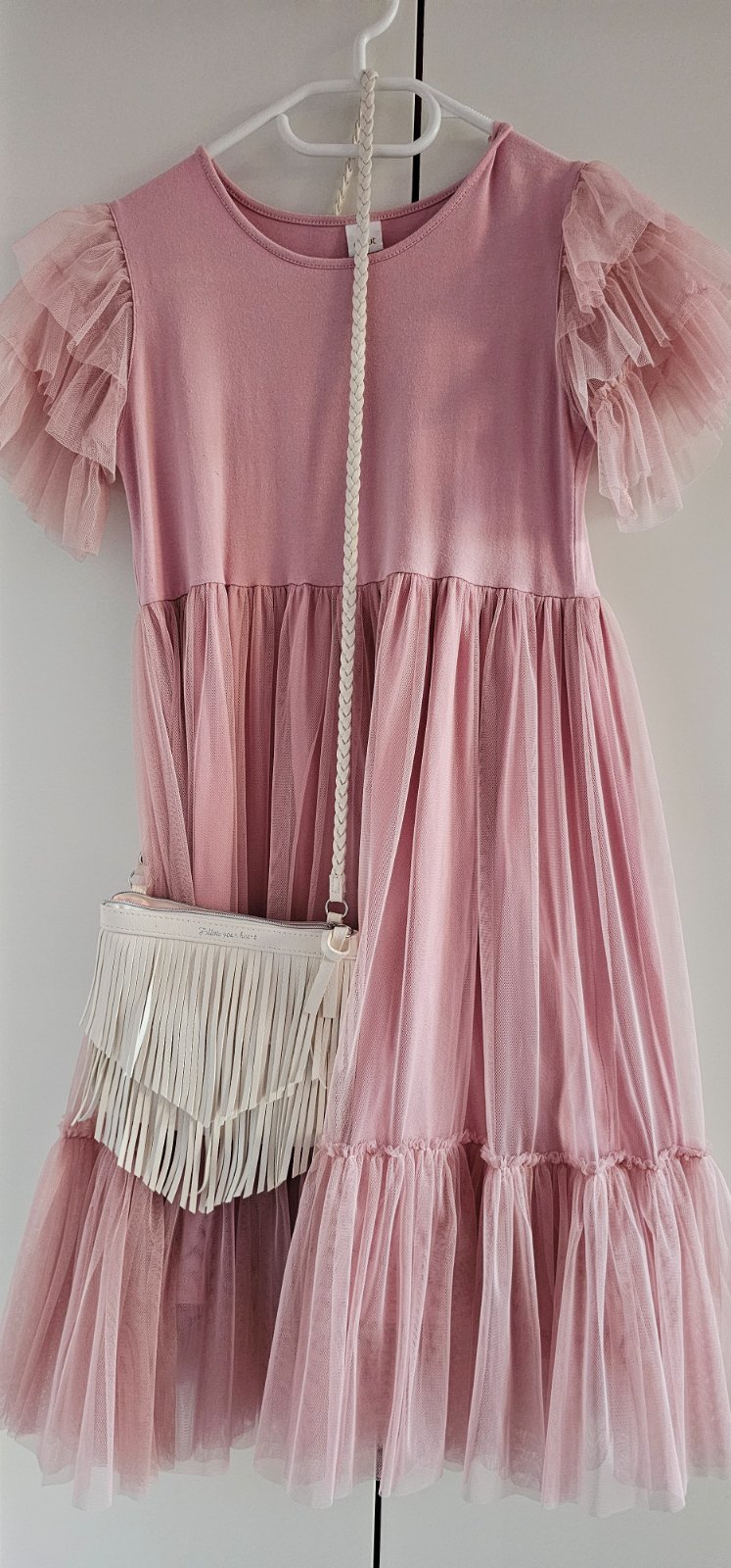 Nádherné a ľahučké letné šaty, asi 2x oblečené. Zaklad je bavlna a potom tylová sukňa a rukávy. Značka atut. PC 55e.