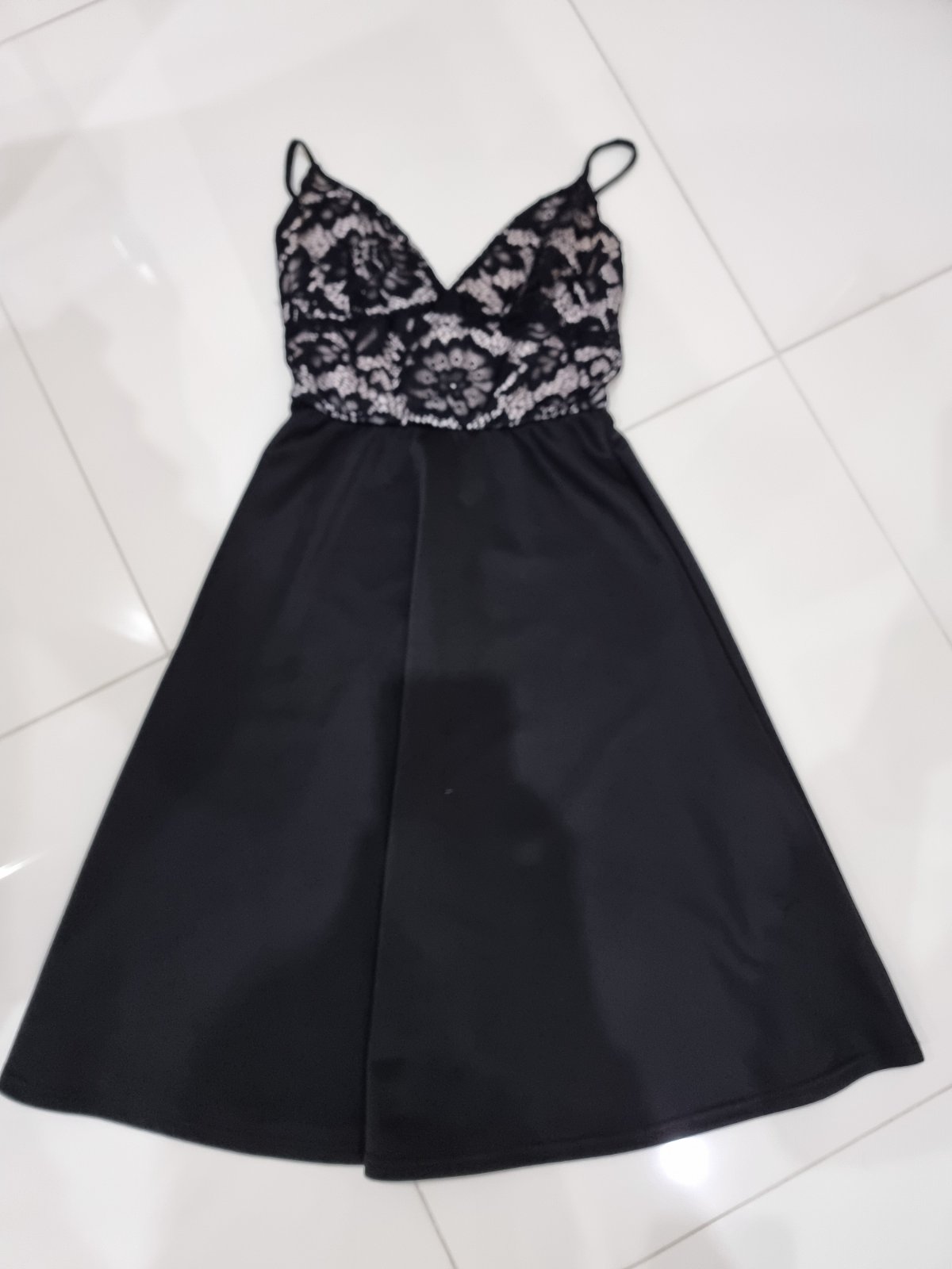 Ponúkam spoločenské šaty pre mladú dámu. veľkosť 34/xs, farba čierna, mierne elasticky materiál, bez rukávou, v páse postihnuté, chtbatik odhalený. jednoduché pekné.