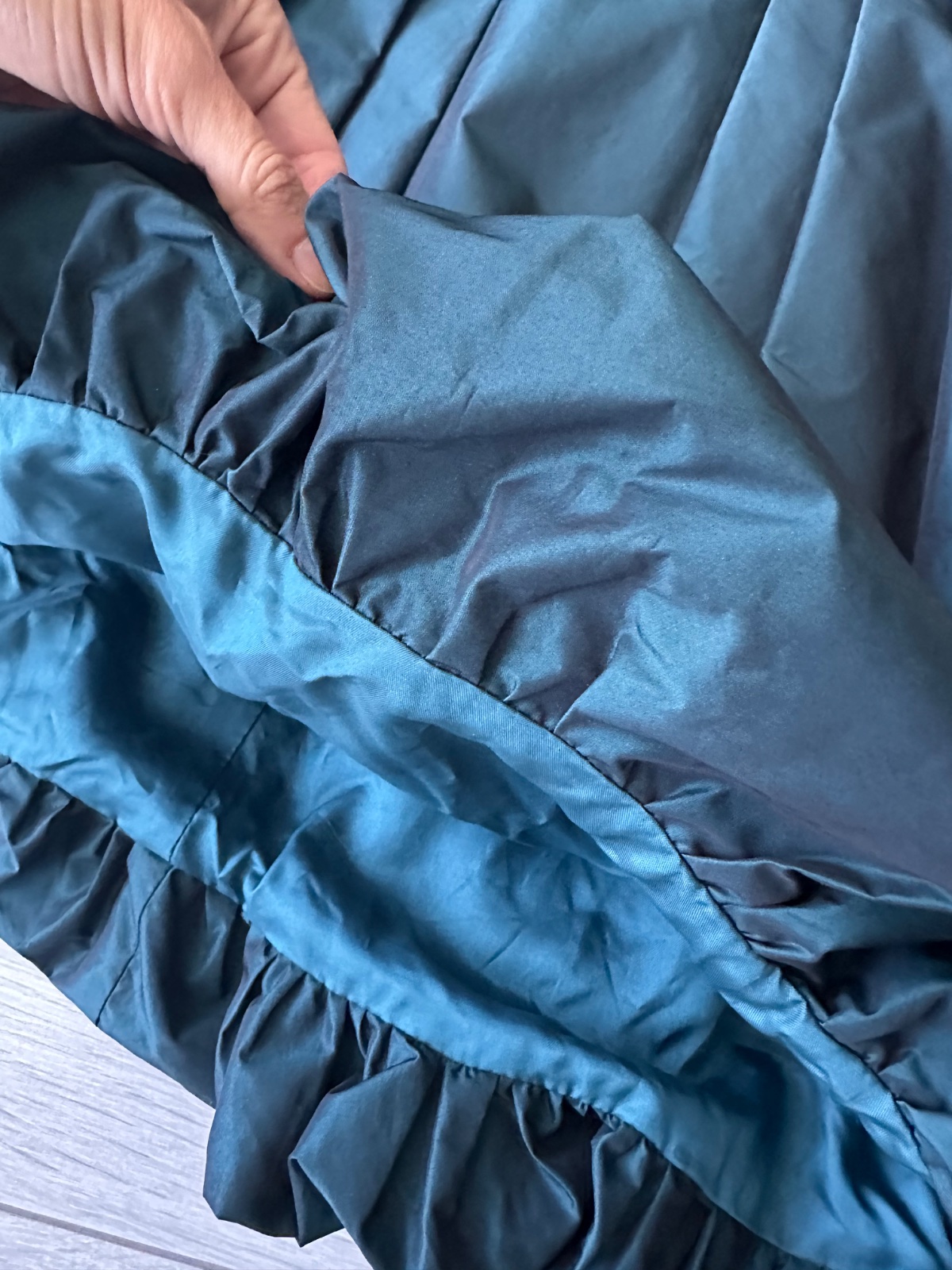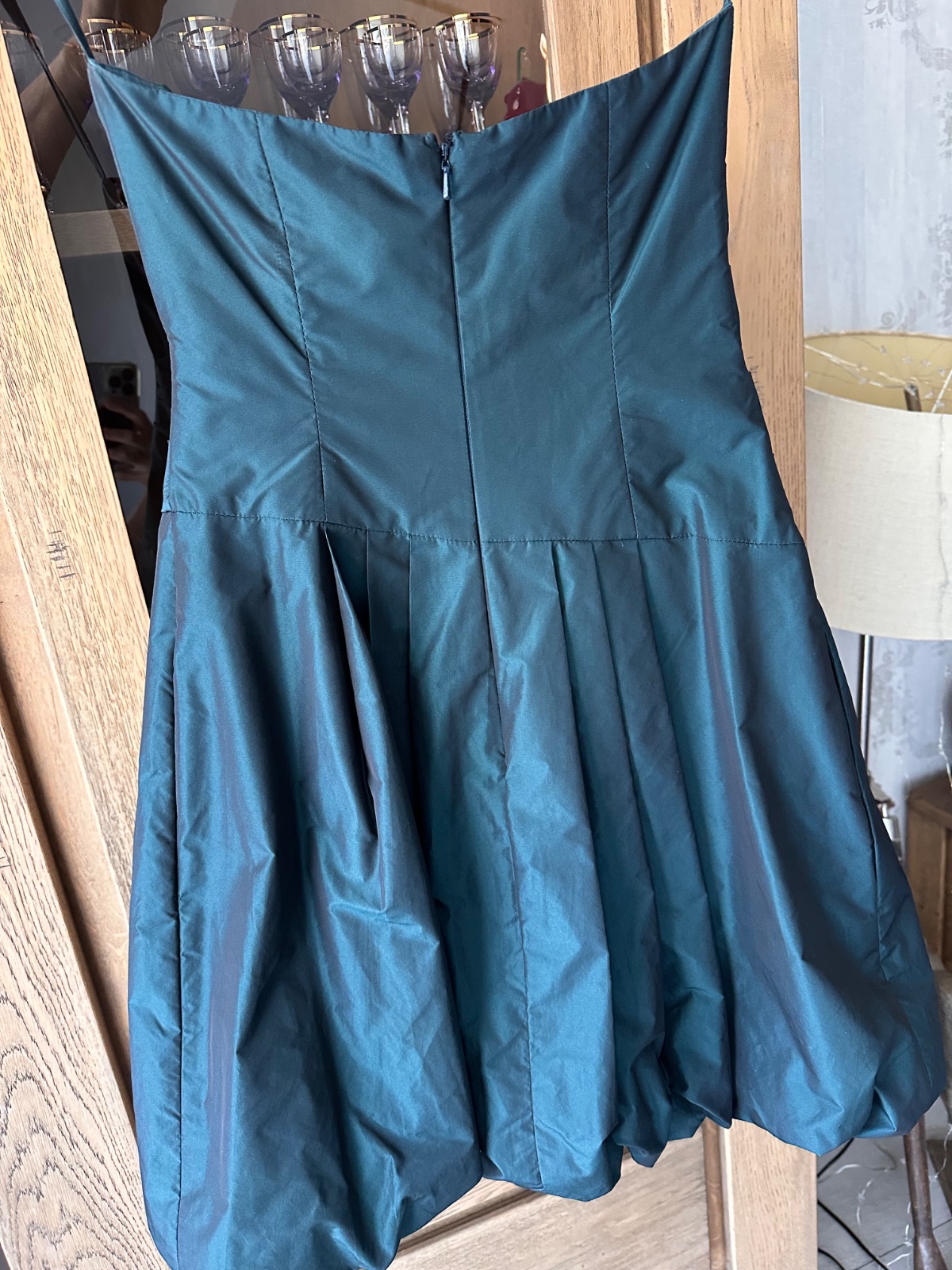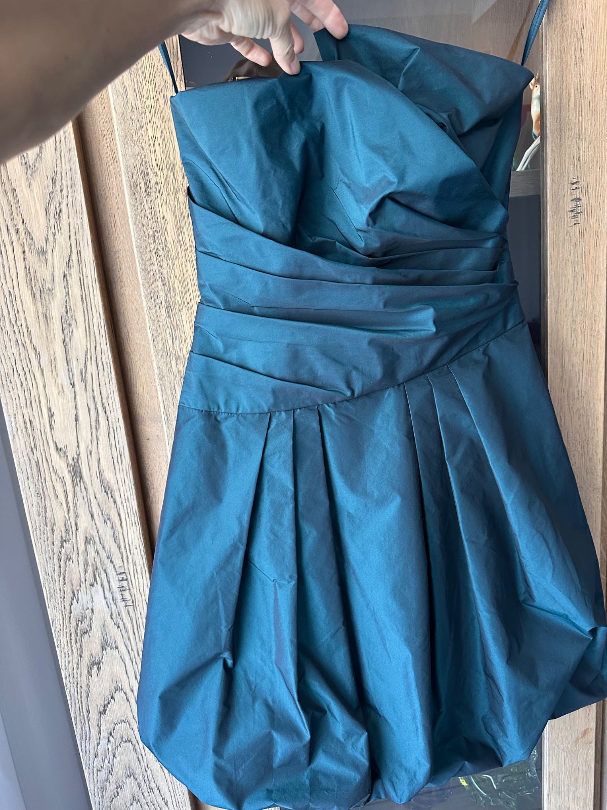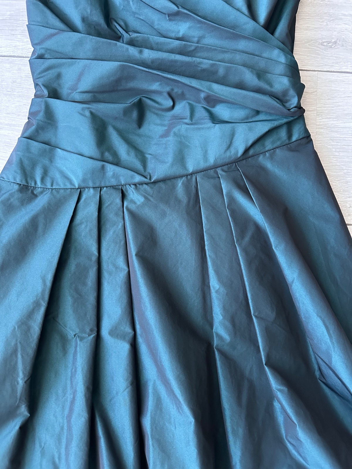 Predam 1x oblecene saty. Nadherna olejova zelena farba ( ako pavie pera ), vsite kostice v dekolte, perfektne drzia prsia. Saty su kvalitne usite, na postave sedia dokonale. Velkost 34, ale tato znacka ma ine cislovanie. Sedia presne na 36. Kupovane v Peek and Cloppenburg Eurovea