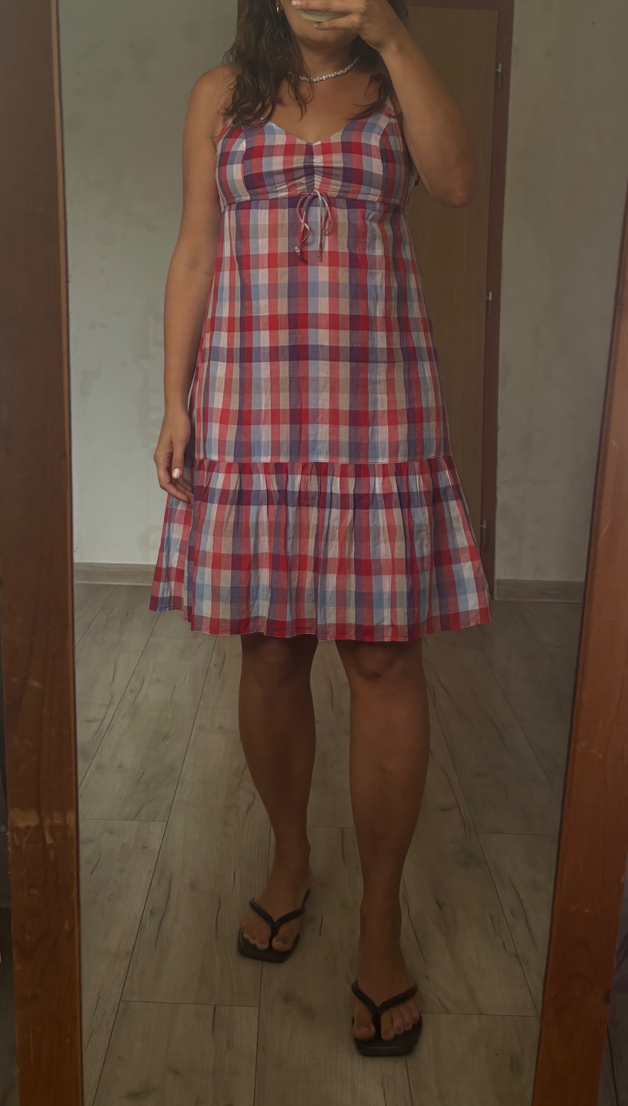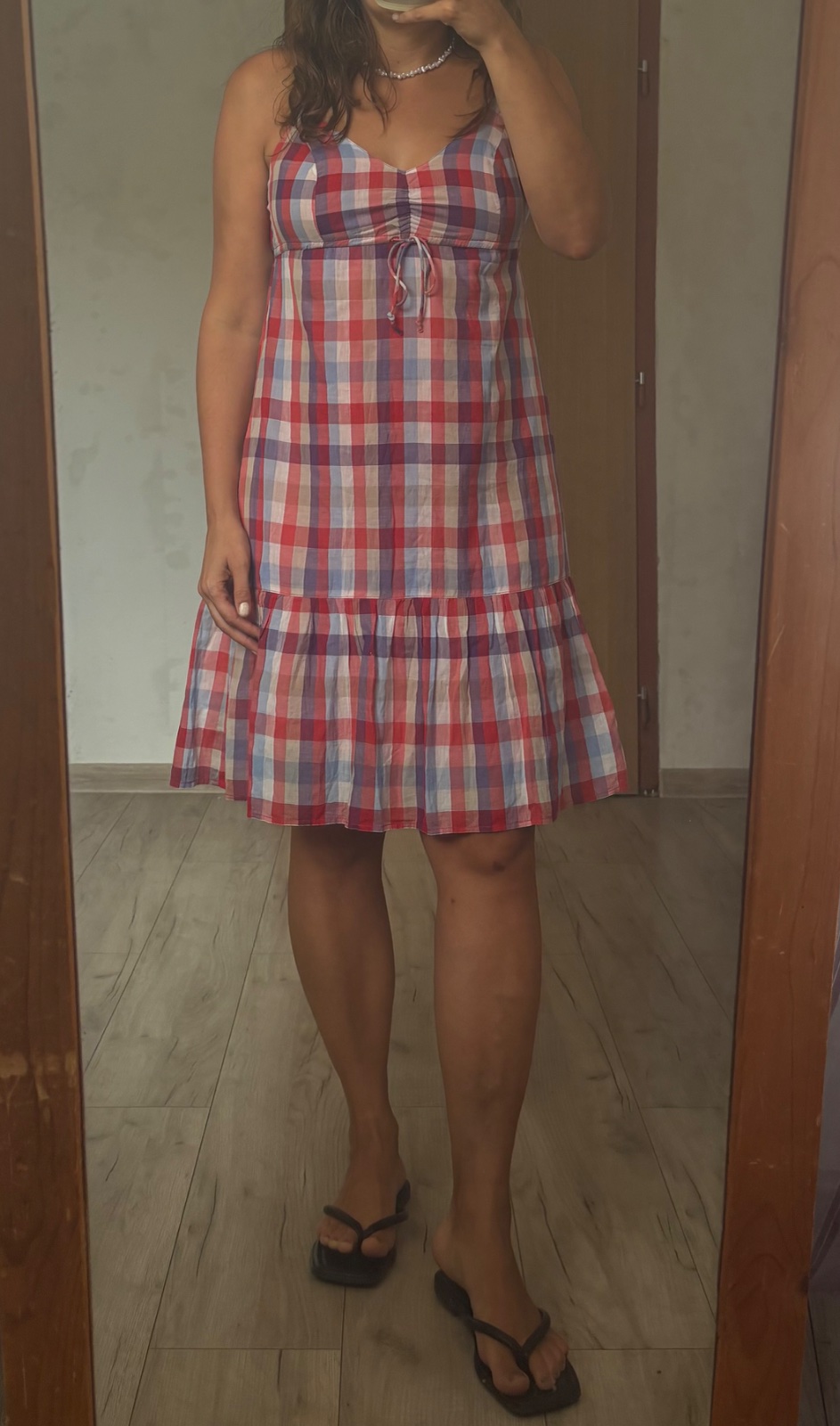 Krásne kockované letné šaty prestrihnuté pod prsiami.