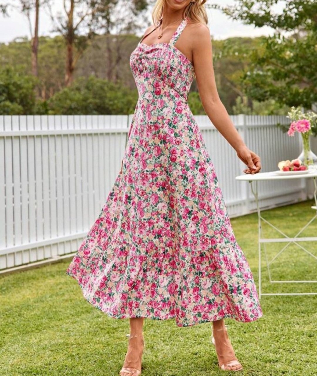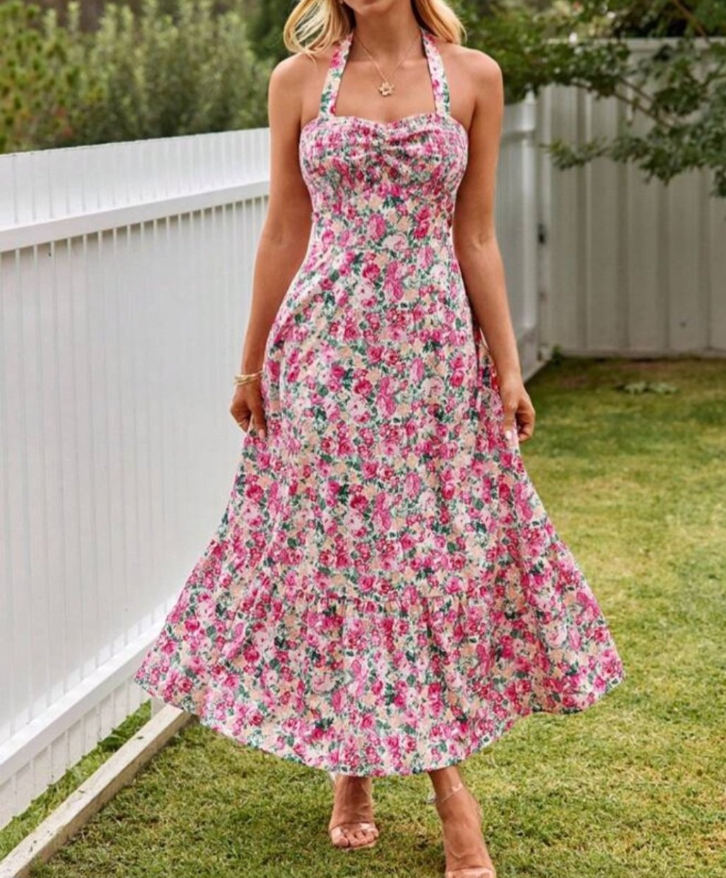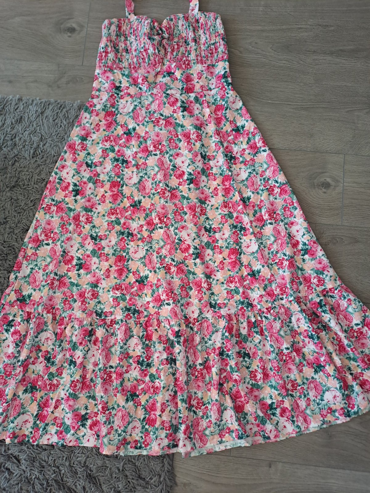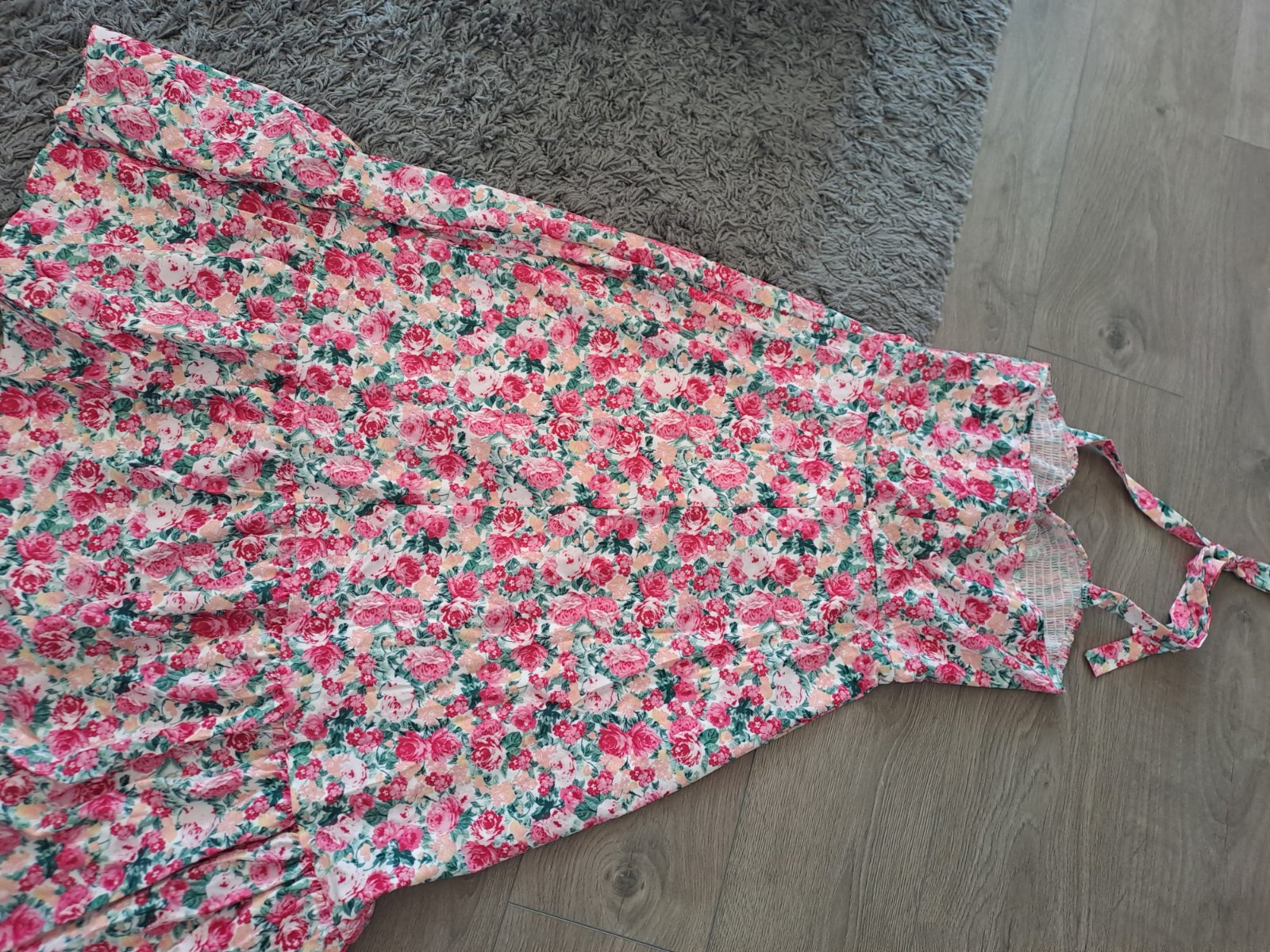 Predám krásne ĺahké letné šaty vel.L,kvetinový vzor,vzadu na dlhý zips=/cez poprsie od 82 do 110 cm ,pás do 82 cm,dĺžka 117 cm/