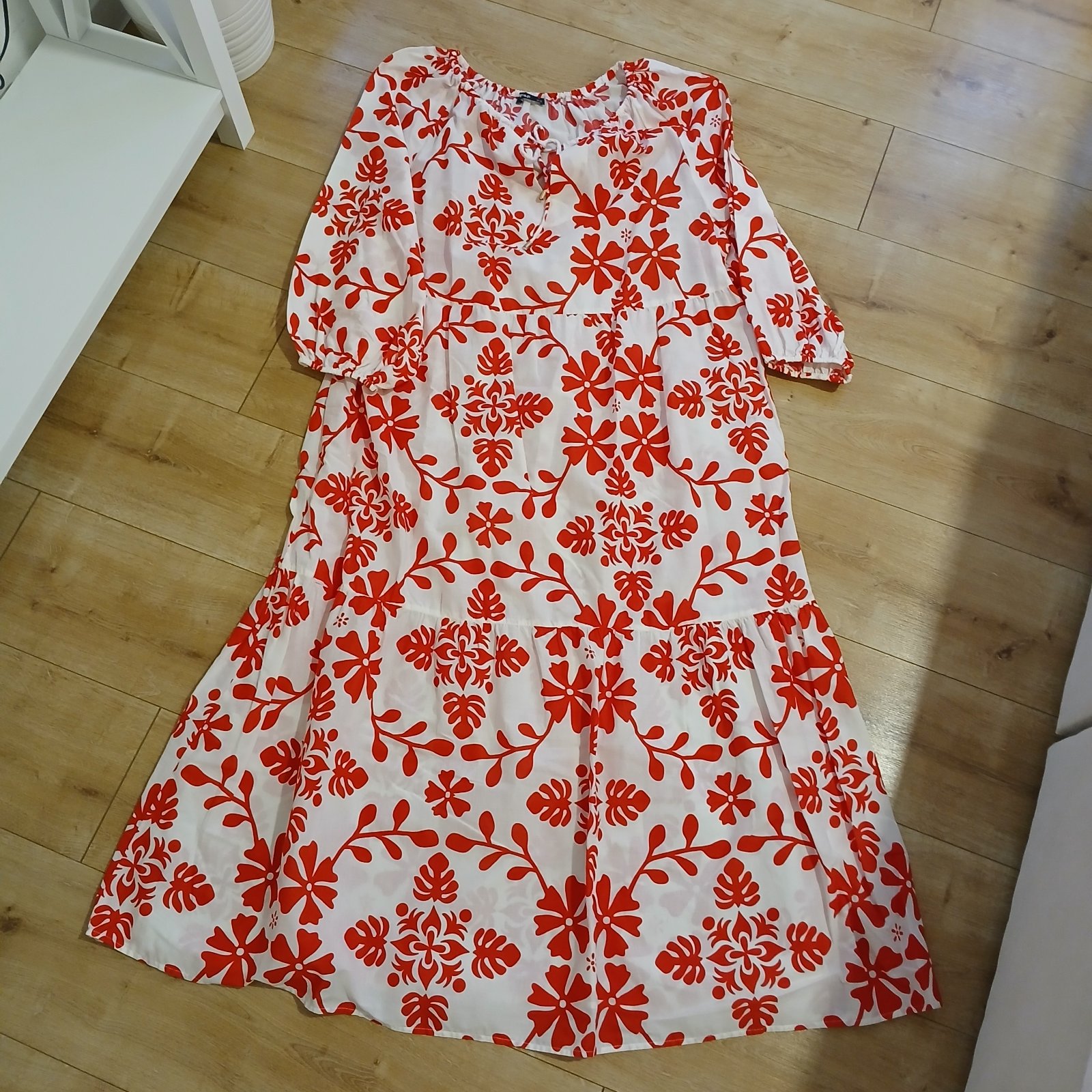 Bielo-červené kvetované dlhé šaty
