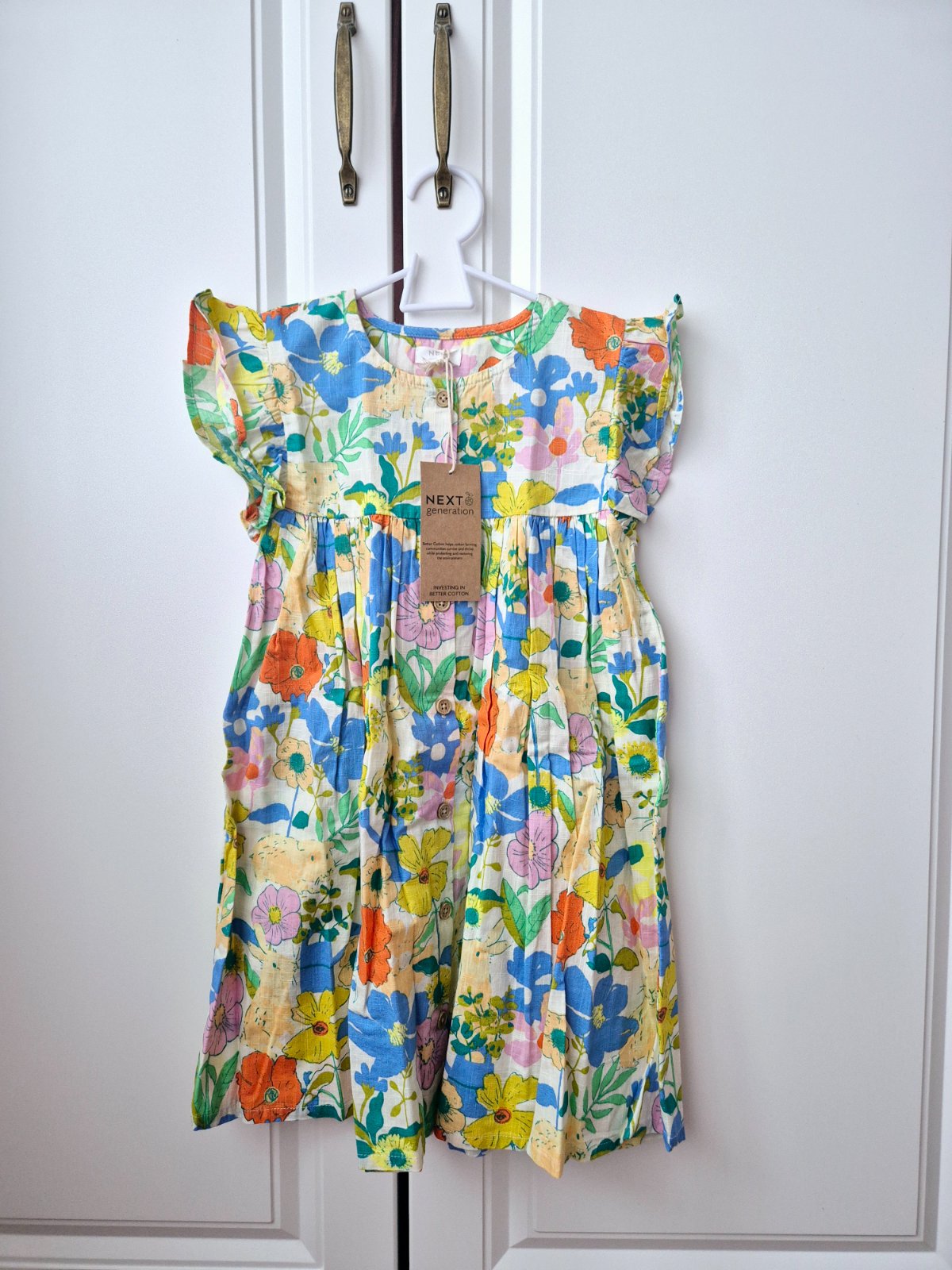 Veľmi známe šaty od Next. Veľkosť písaná 4-5 rokov. Vynosíte určite dlhšie. Nosili sme aj v 7 rokoch ako tuniku. Naozaj krásne.