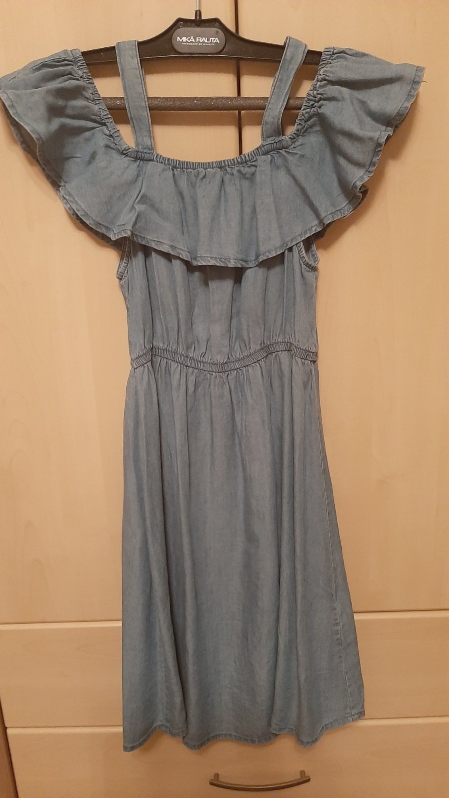 Krásne riflove šaty, jemna bavlna, minimálne nosene. Dosť široké aj na 146.