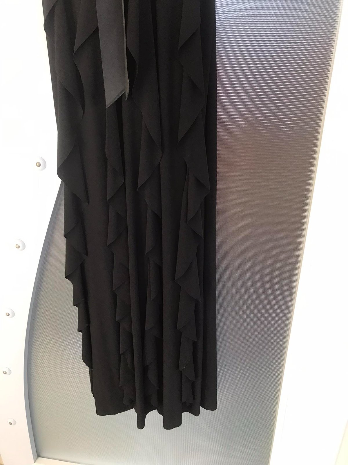 100 % stav,1 x oblečené, veľmi zaujímavý strih,dlžka od pazuchy dole = 115 cm.....pod prsiami zaujímavá saténová mašľa ( nemusí sa použiť ) - dá sa odpárať,smerom dolu krásne padavé diely akoby tulipánkový strih ,perfektne zoštíhľujú,sú dlhé - nie midi,nie maxi,ťažšie,pevnejšie