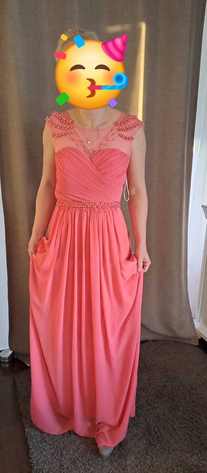 NLY trend nove damske dlhe saty s perlami,komplet s etiketou a nahradnymi perličkami,velkost M,dlzka je 137cm a sirka v pase je cca 38x2cm,cez prsia je gumka…fakt krasne a farba koralovo ruzova