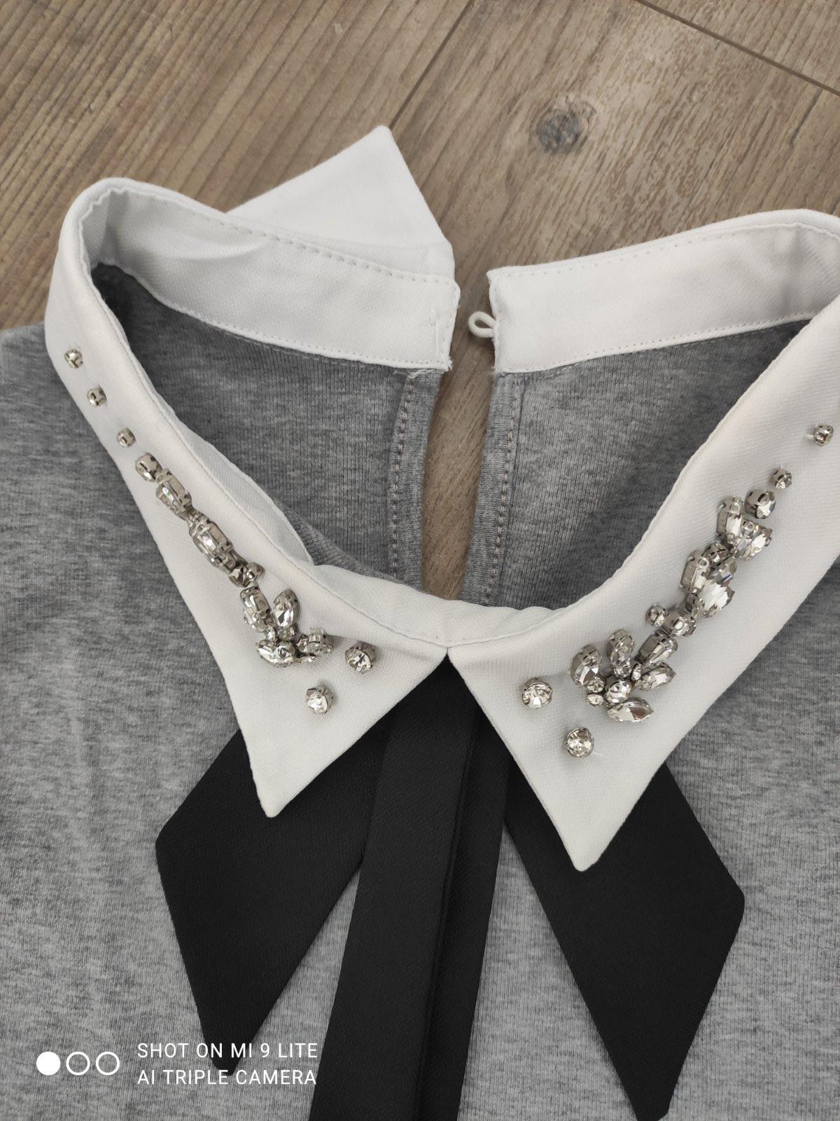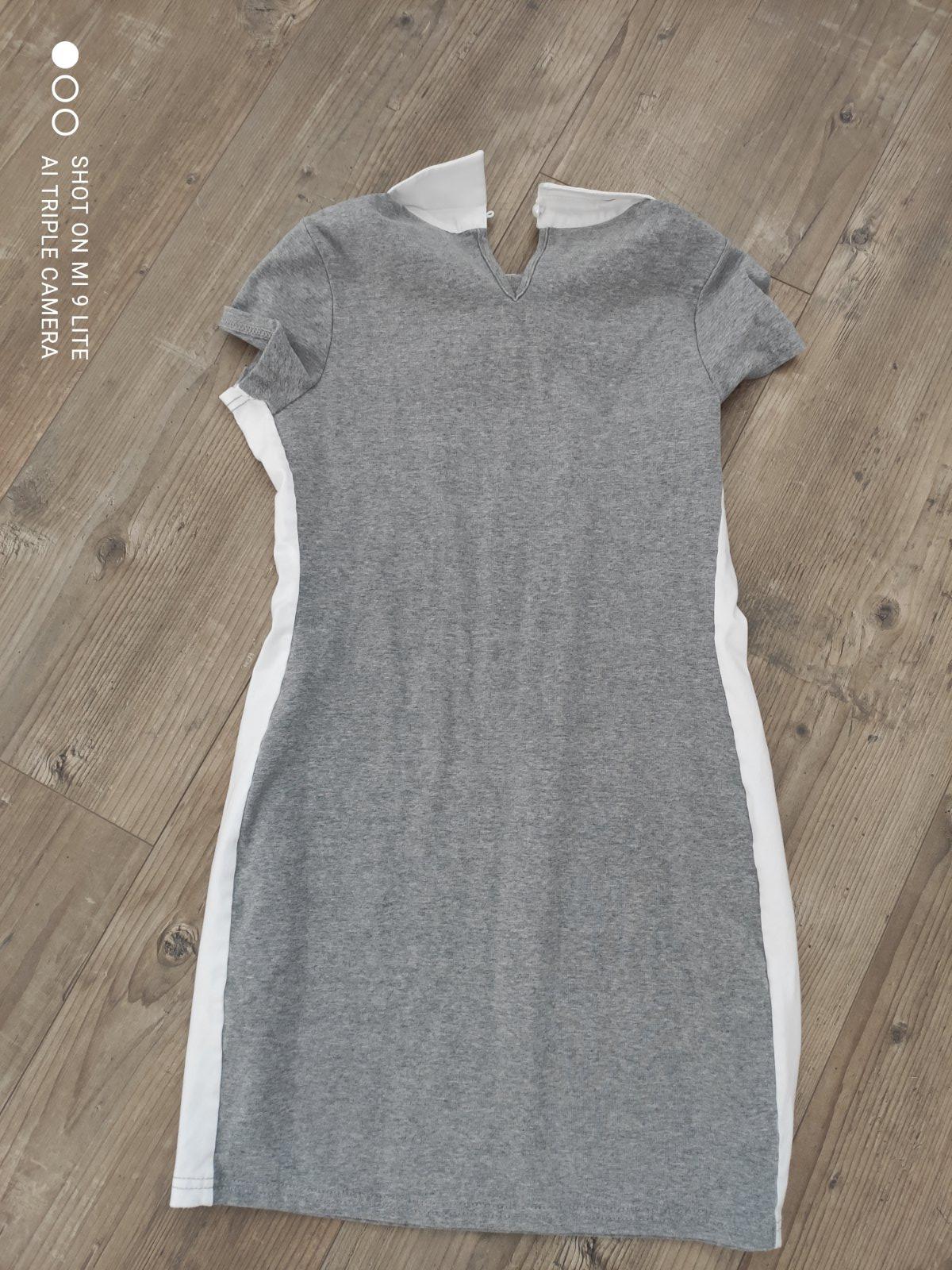 nadherne bledo sive saty s bielym pasikom a limcekom na ktorom su kamienky. saty boli oblecene 1 krat, su v dokonalom stave. stay su trickove - bavlnene s vysokou primesou elastanu . dlzka 80cm