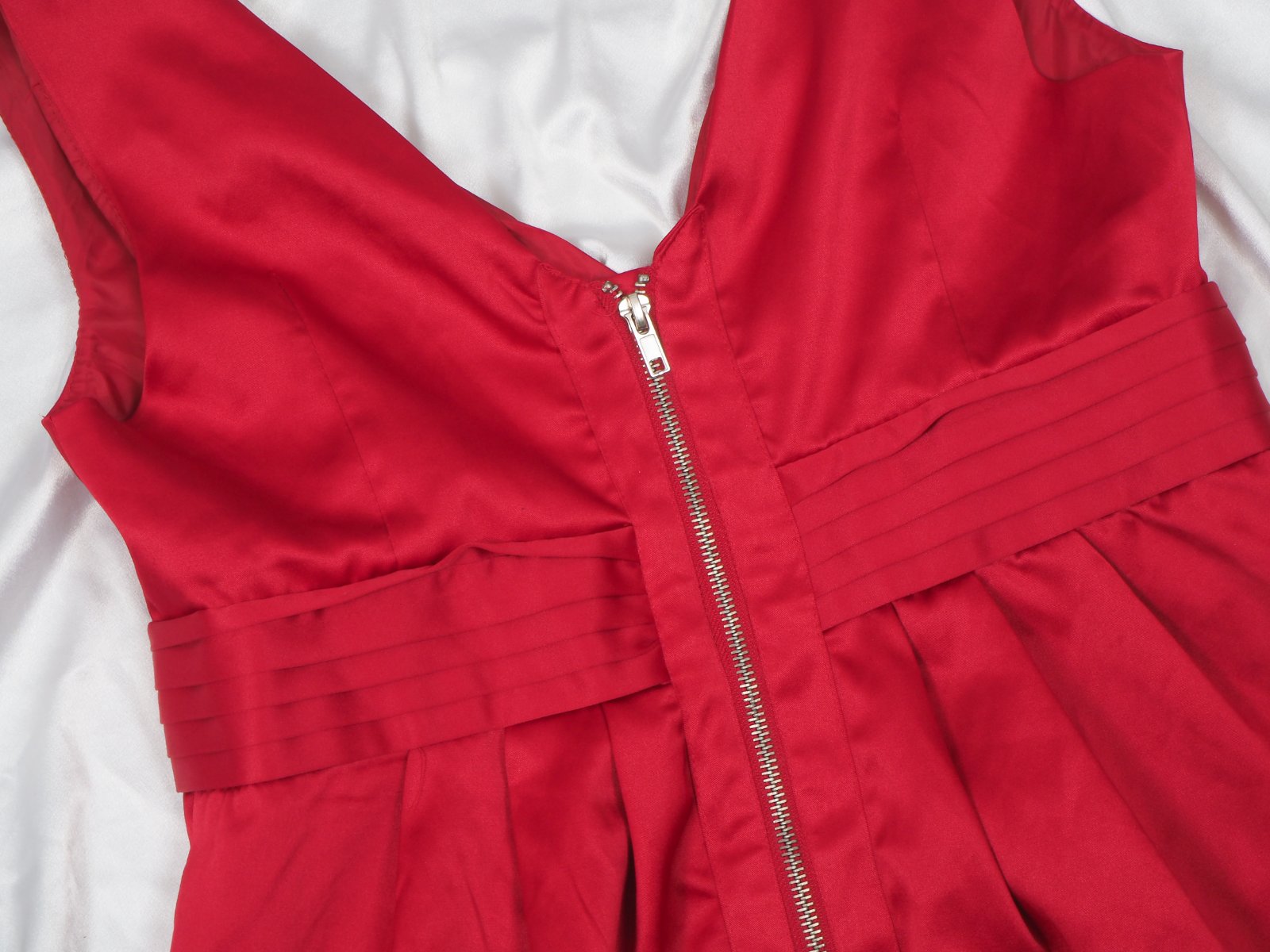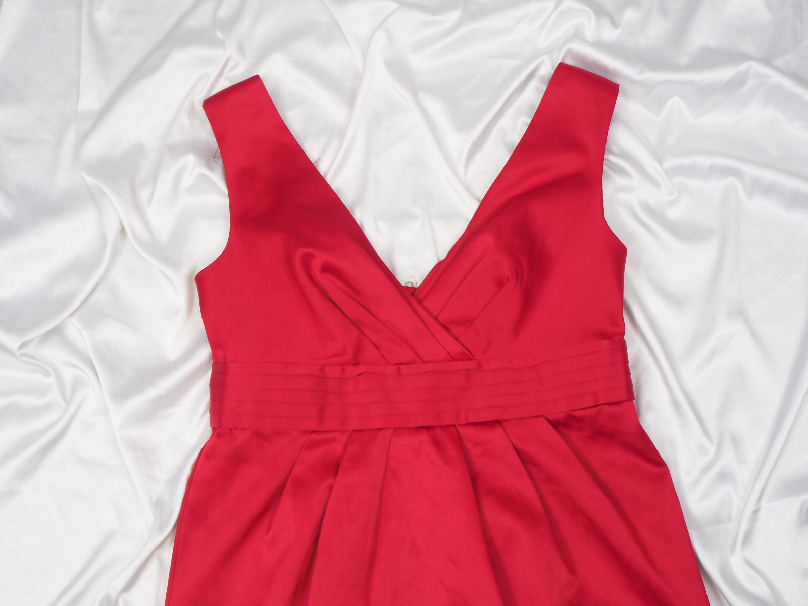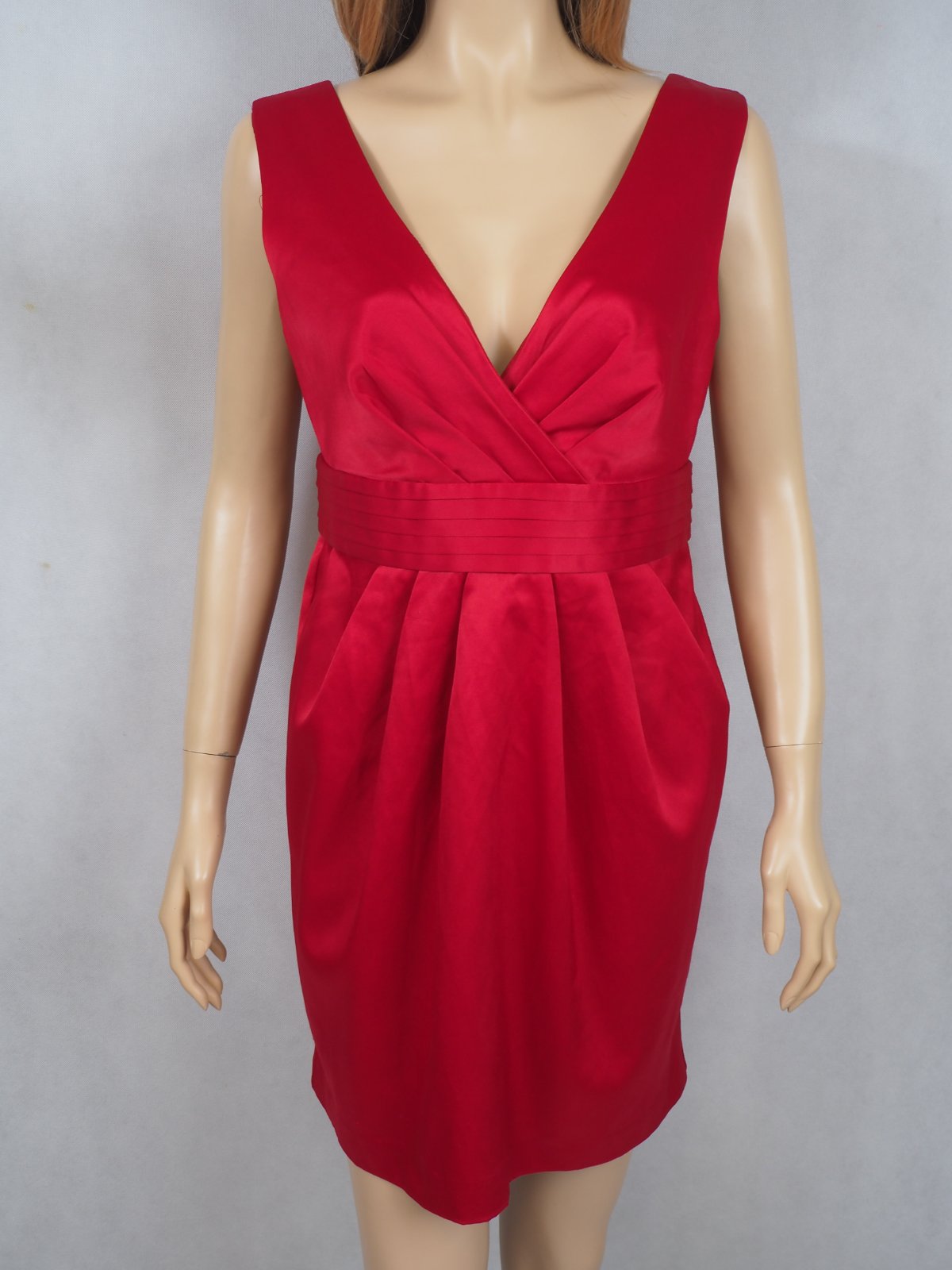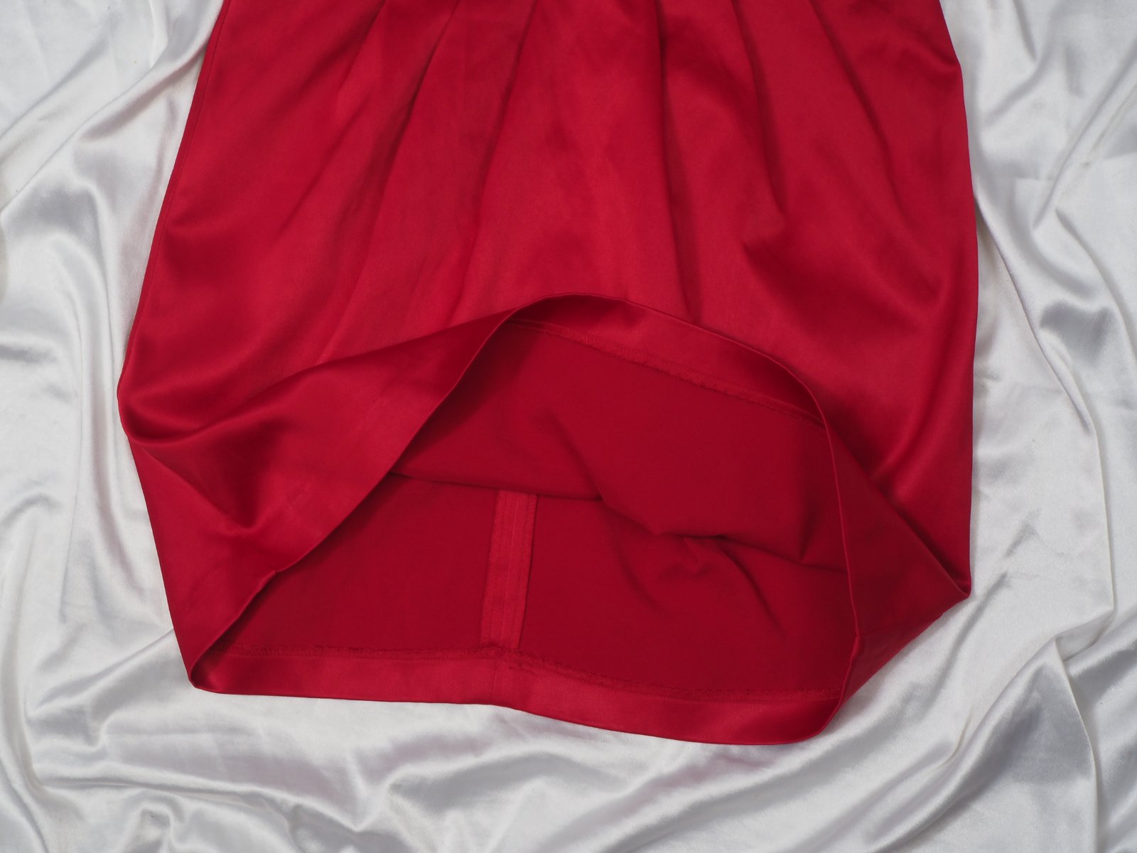 Kvalitné saténové šaty červenej farby, vzadu zips, podšité, materiál 100% polyester, super stav.