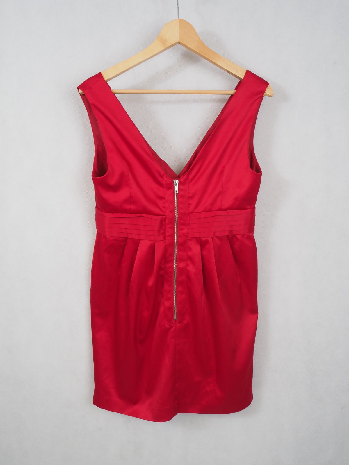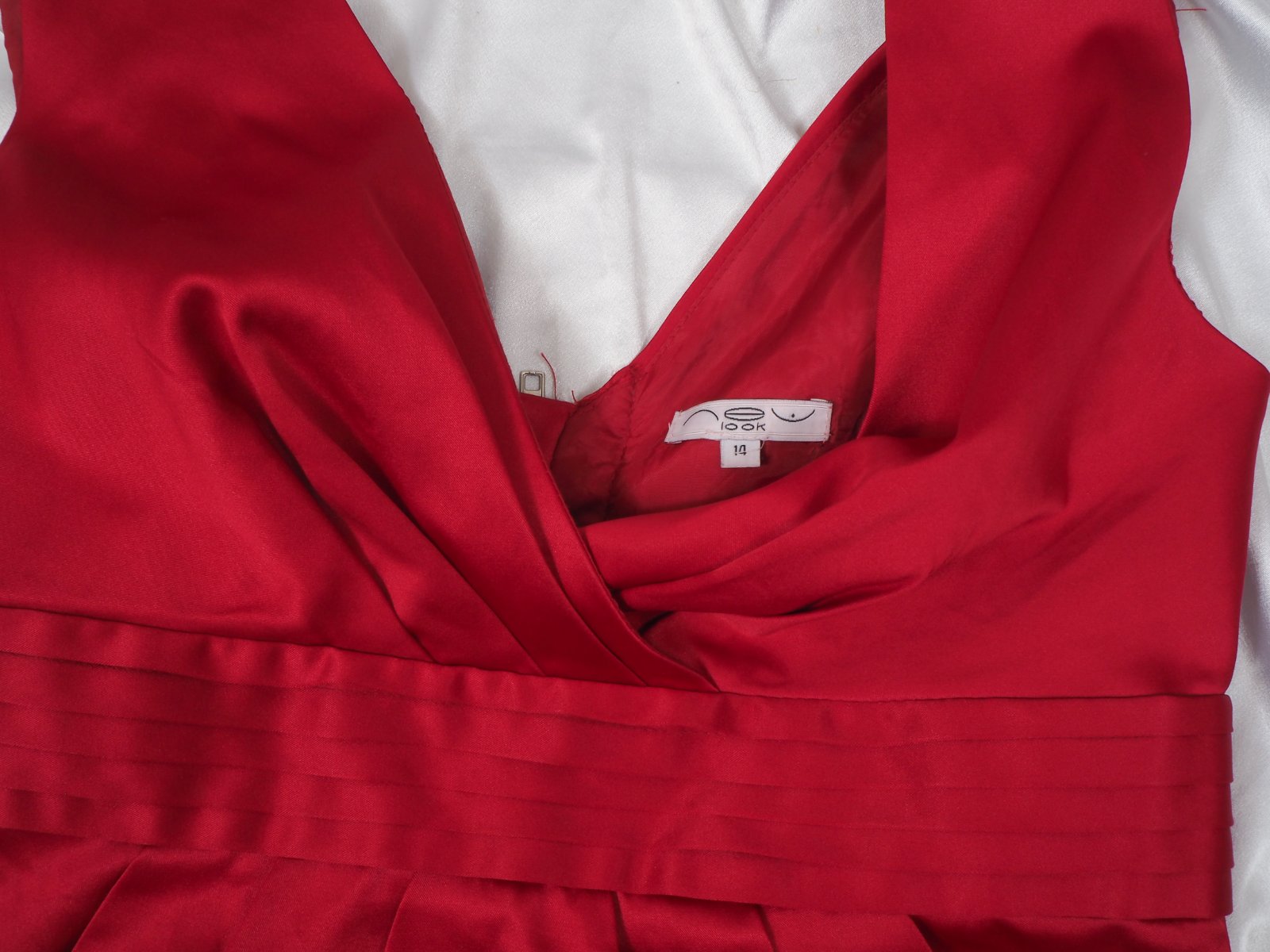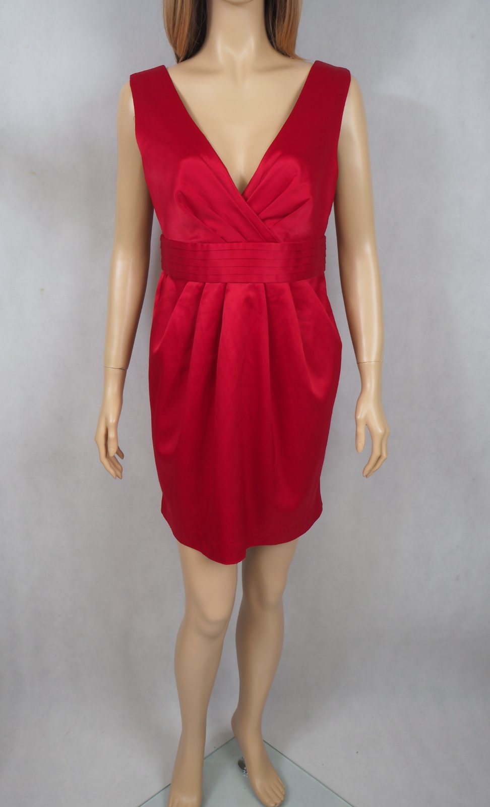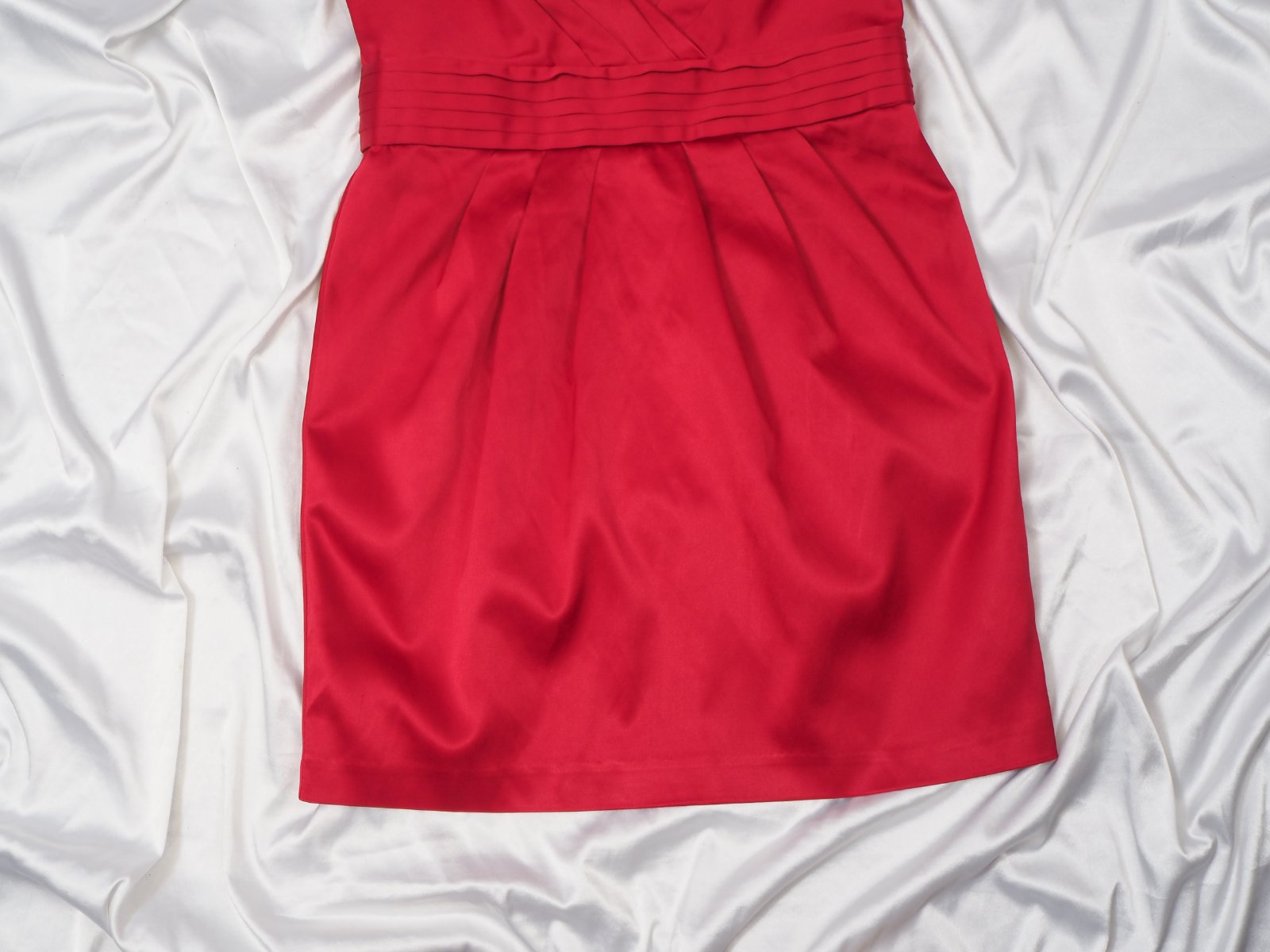 Kvalitné saténové šaty červenej farby, vzadu zips, podšité, materiál 100% polyester, super stav.