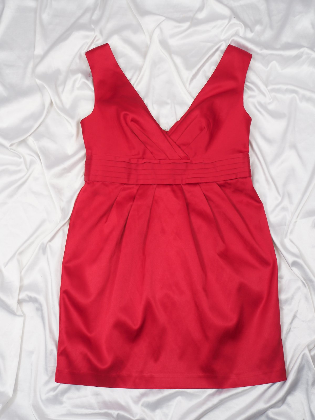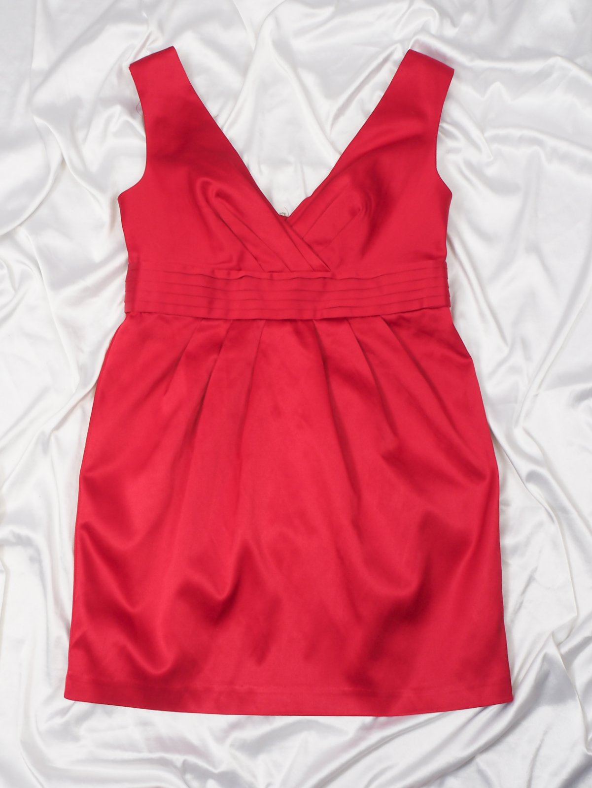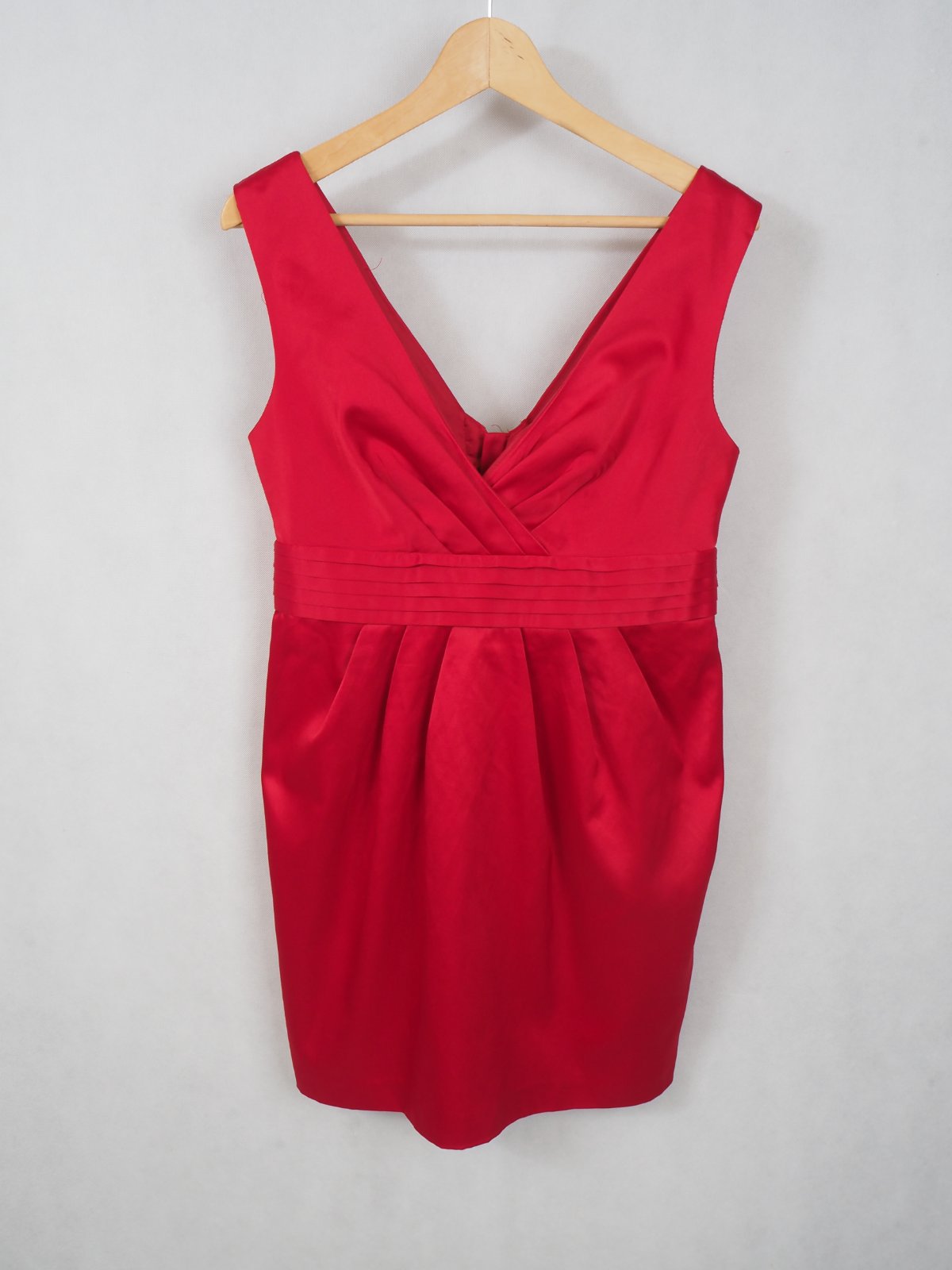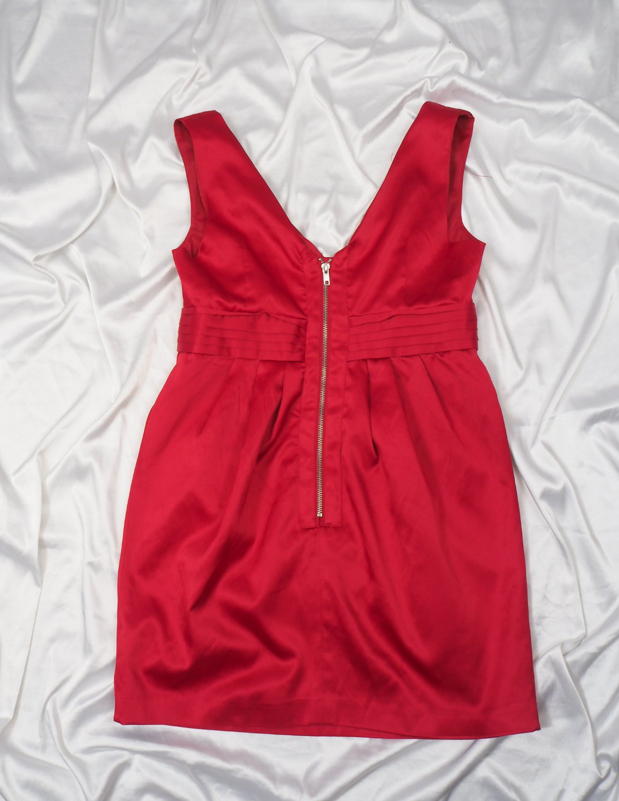 Kvalitné saténové šaty červenej farby, vzadu zips, podšité, materiál 100% polyester, super stav.