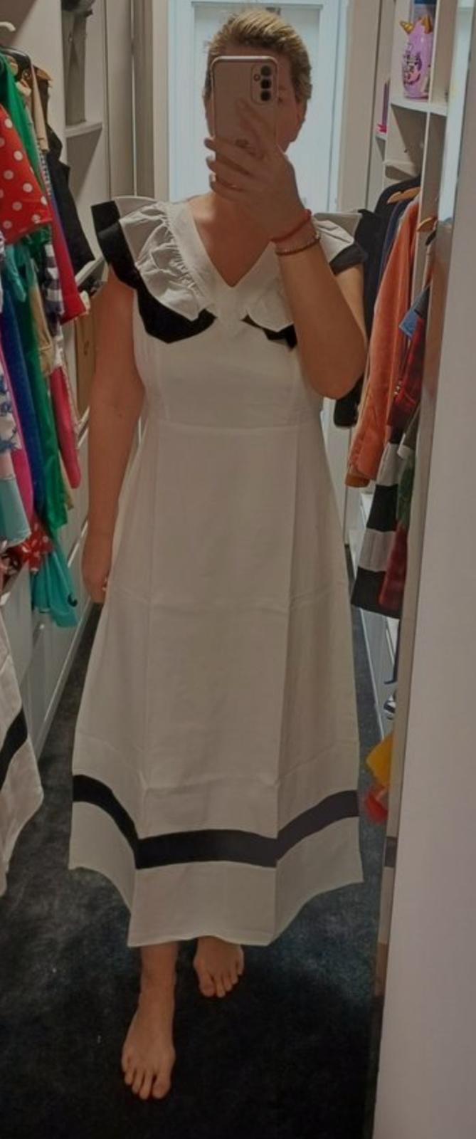 Predám dlhé šaty Zara v L, šírka meraná pod rukávmi 56 cm , dĺžka 118 cm , rukáv 52 cm od pleca a od krku 74 cm, pekný rovný strih v páse sa dajú stiahnuť , biely podklad + čierne pásy , príjemný m...