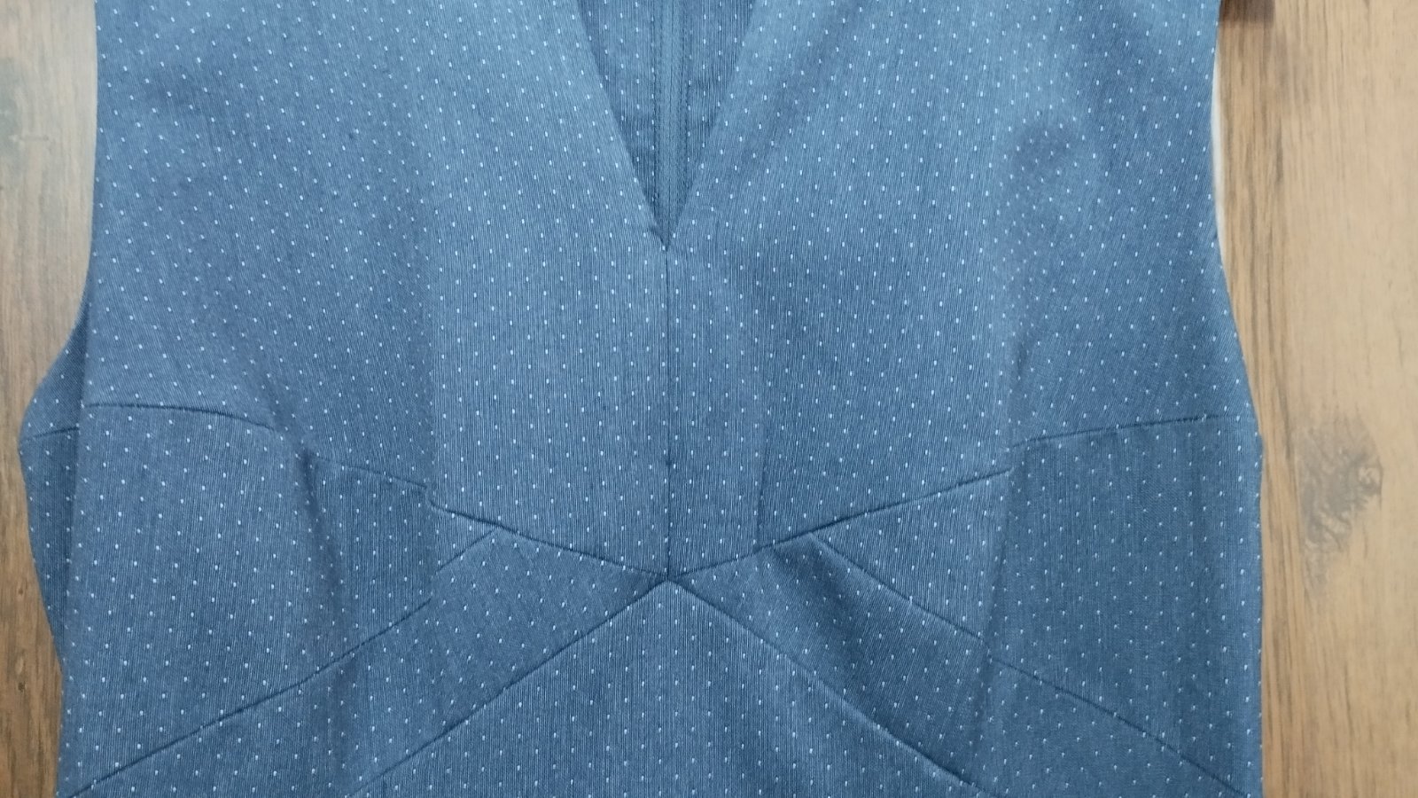 oblečené raz na príležitosť s bielou blúzkou, dlžka stredom PD - 82 , dlžka stredom ZD - 76, prsia 45x2, prestrih - ten pás pod prsiami 2x39, boky 48x2 podšité, mierne elastické, sivé odtiene, modr...