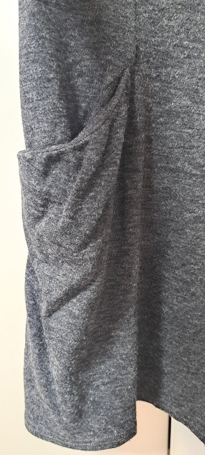 Dlhší sivý kvalitný svetrík, príp. šaty nad kolená. Min. nosený, bez poškodenia cena 5€ + poštovné