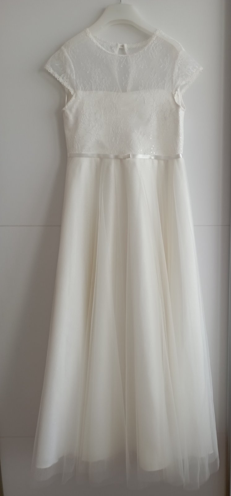 Nádherné nežné šaty značky Bianco Evento, vhodné na 1. sväté prijímanie alebo svadbu smotanovo bielej farby (ivory). Vrátane spodničky. Čisté, nádherné, salónové bez chýb. Žiadna čína!