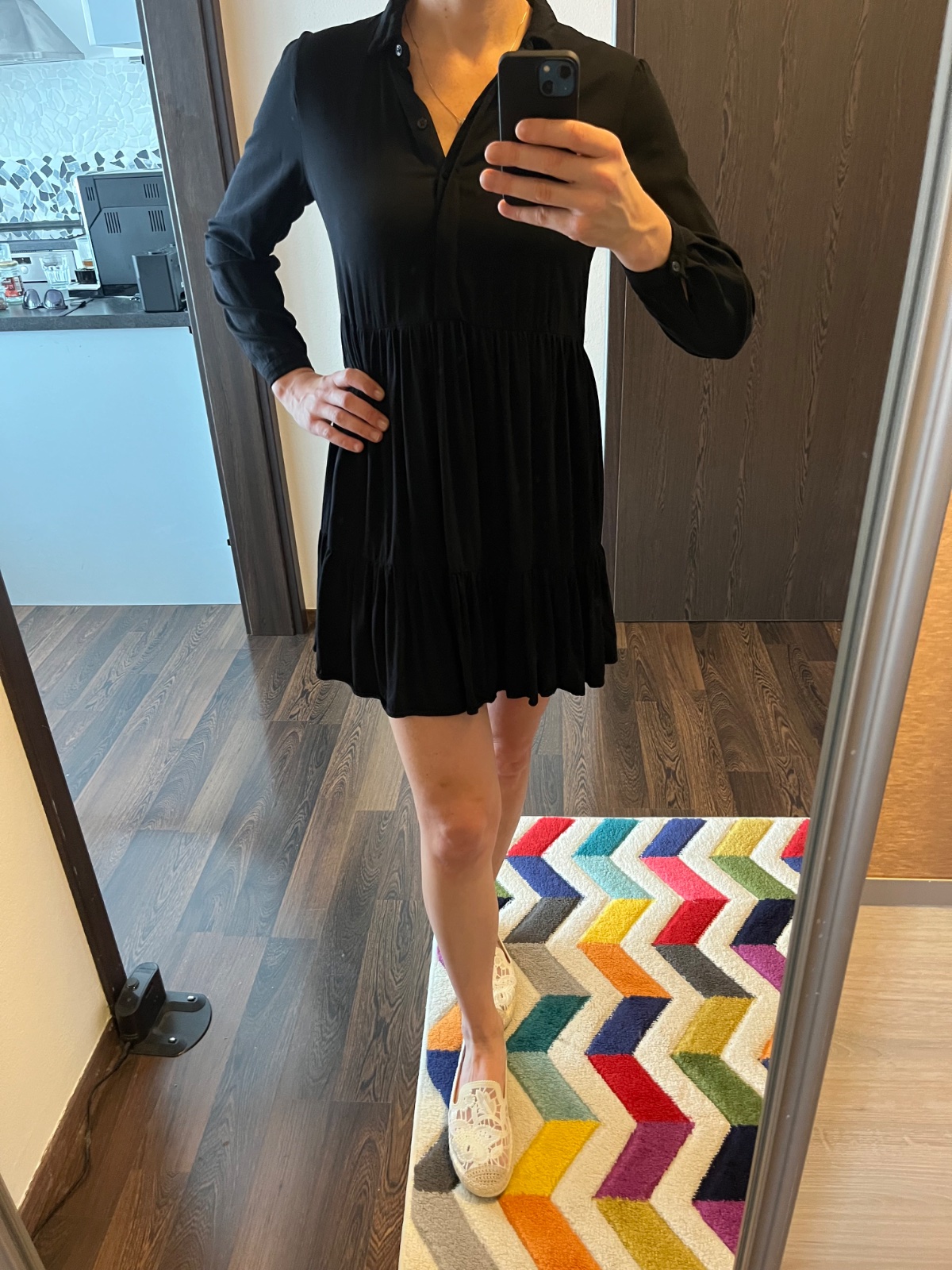 Mini stay s dlhym rukavom. Volny strih. Velkost 36. Nosene prilezitostne, bez poskodeni. Syta cierna farba (aj ked na foto nevyzera).