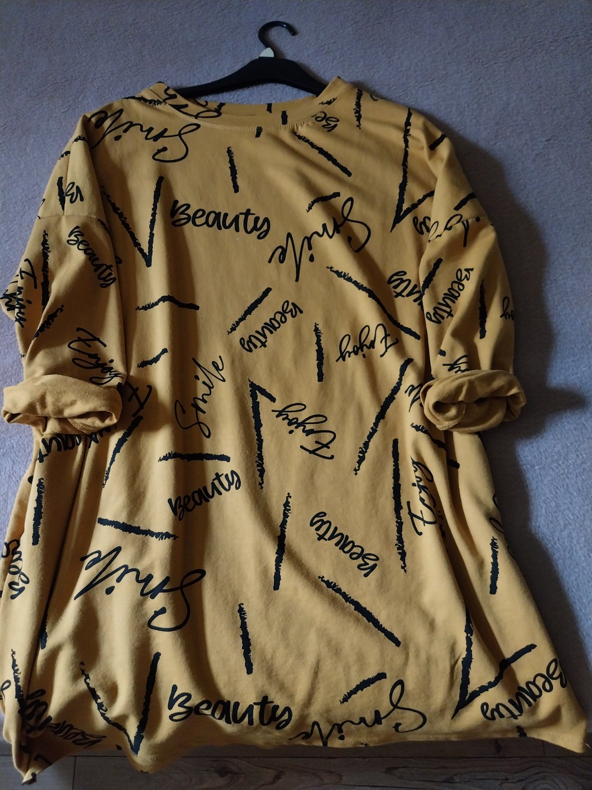 Ponúkam šaty z teplakoviny, horčicovej farby, po kolená, dlhý rukáv,ktorý sa vyhrna na 3/4