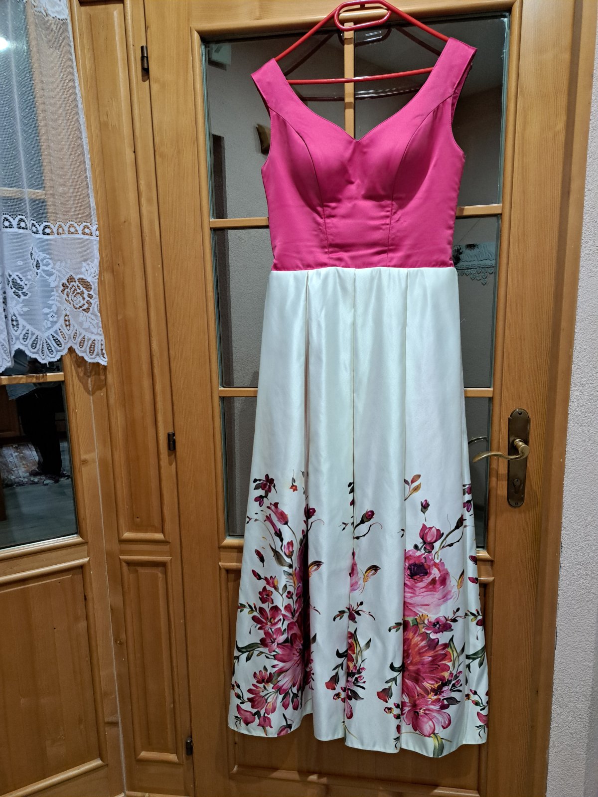 Stav ako na foto. Ale neboli v cistiarni. Jednoduchy strih. Daju sa skratit. Dlzka je 146 cm. Sirka pod pazuchami 46 cm