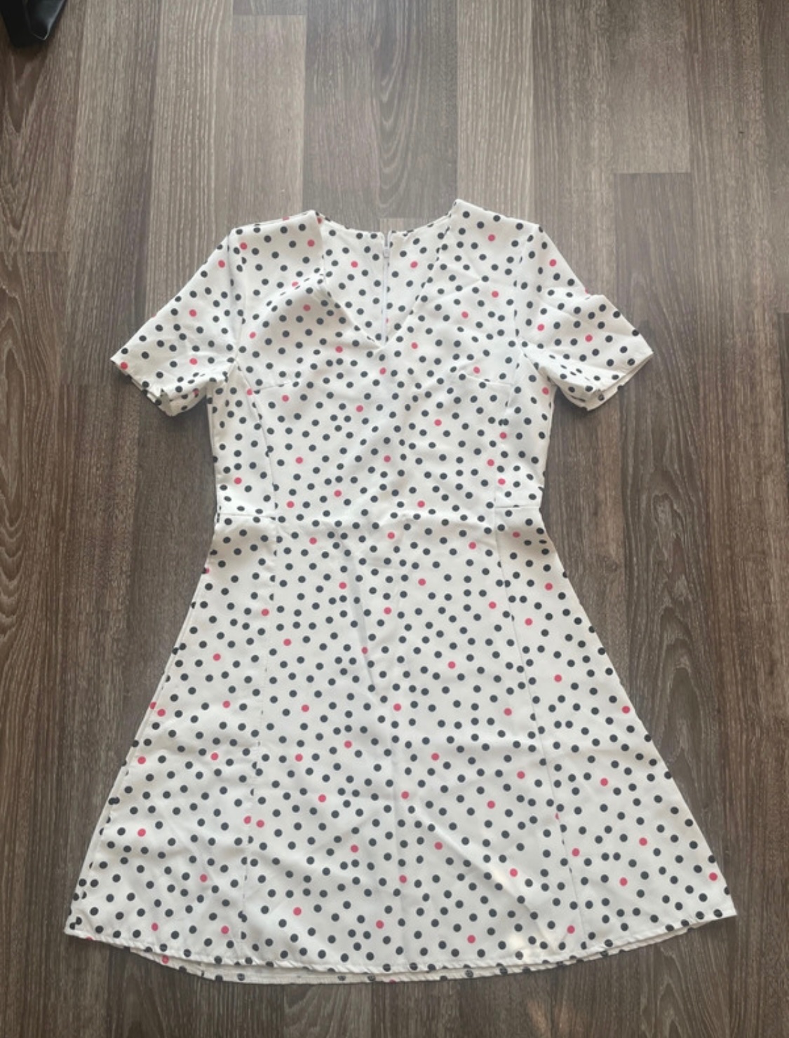 Veľmi pekné,padave, malo nosené. So spodnickou. Veľ sedí na 38/40/42. Dĺžka:91 cm, pod pazuchami je to široké keďže sú padave cca 70 cm, pás gumka.