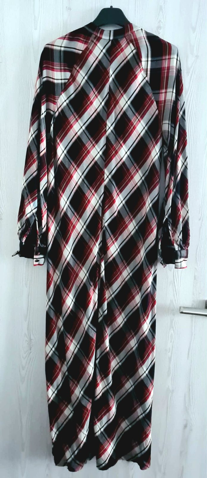 Veľmi príjemný chladivý materiál. S opaskom, na gombíčky, košelové rukávy. Môžu byť na von ale aj na doma, letné dovolenky. Sedia skôr na vyššiu postavu. Dĺžka 12 cm, veľkosť S, zn. H/M