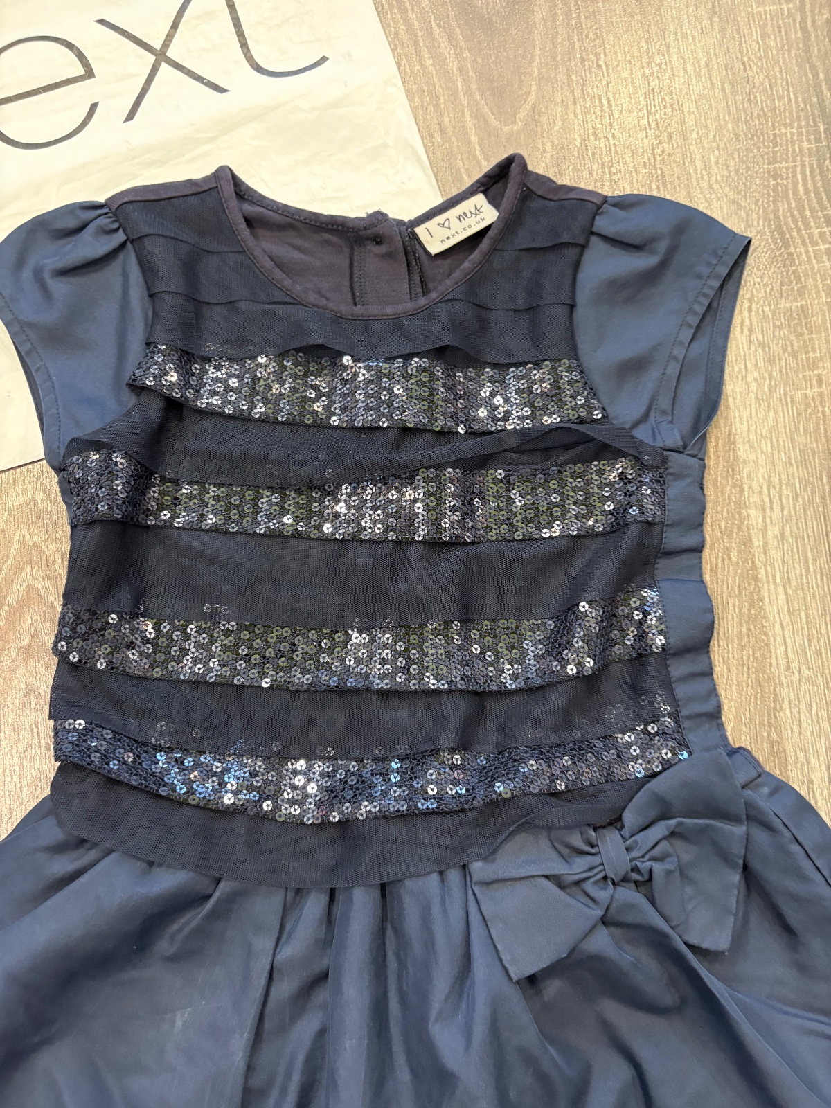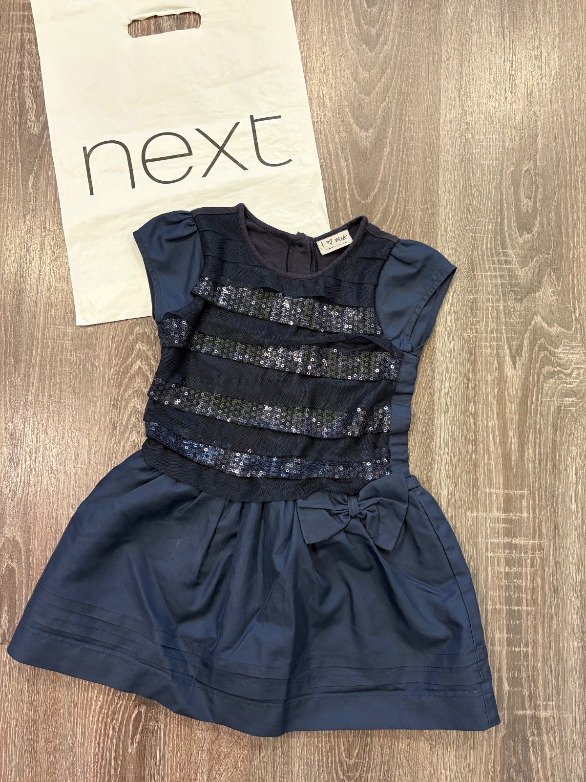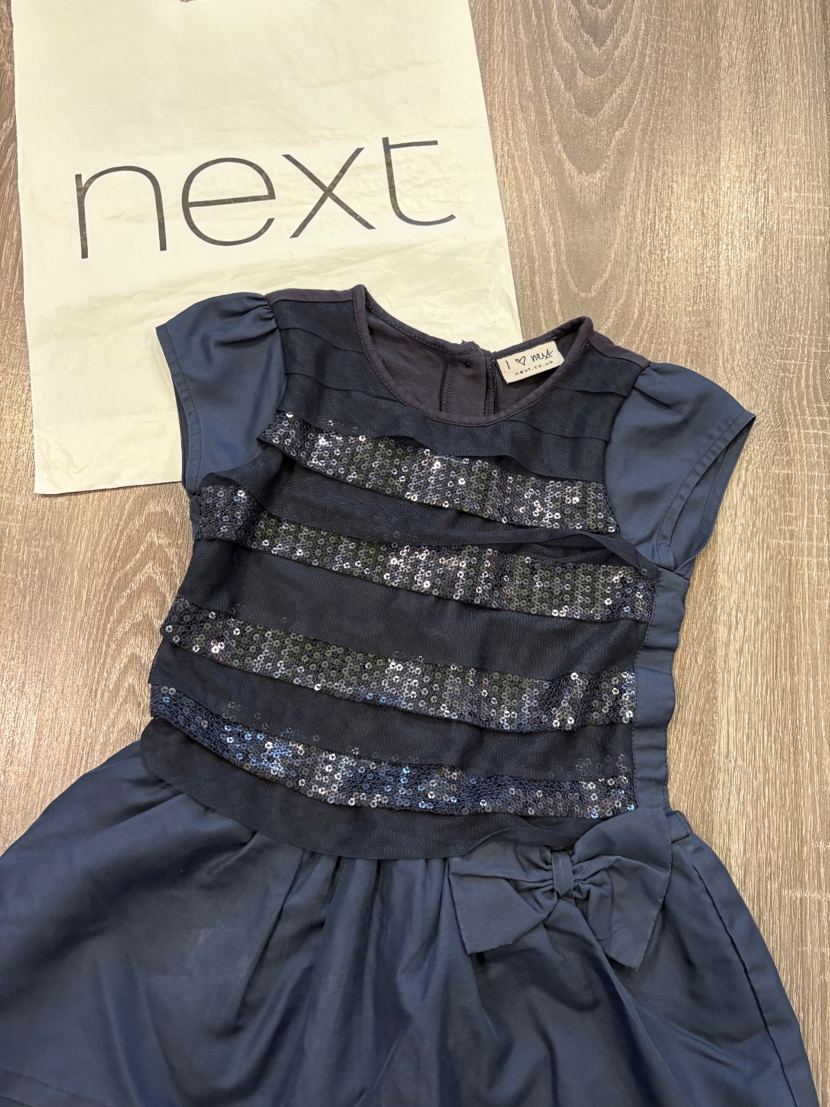 07.NEXT krasne spoločenské šatky vo velkosti 110, s masličkou v páse, suknička je podšita spodničkami, super stav, bez poškodení, dlžka je 56cm a širka v podpazuší je cca 32x2cm, zapínanie vzadu na zips