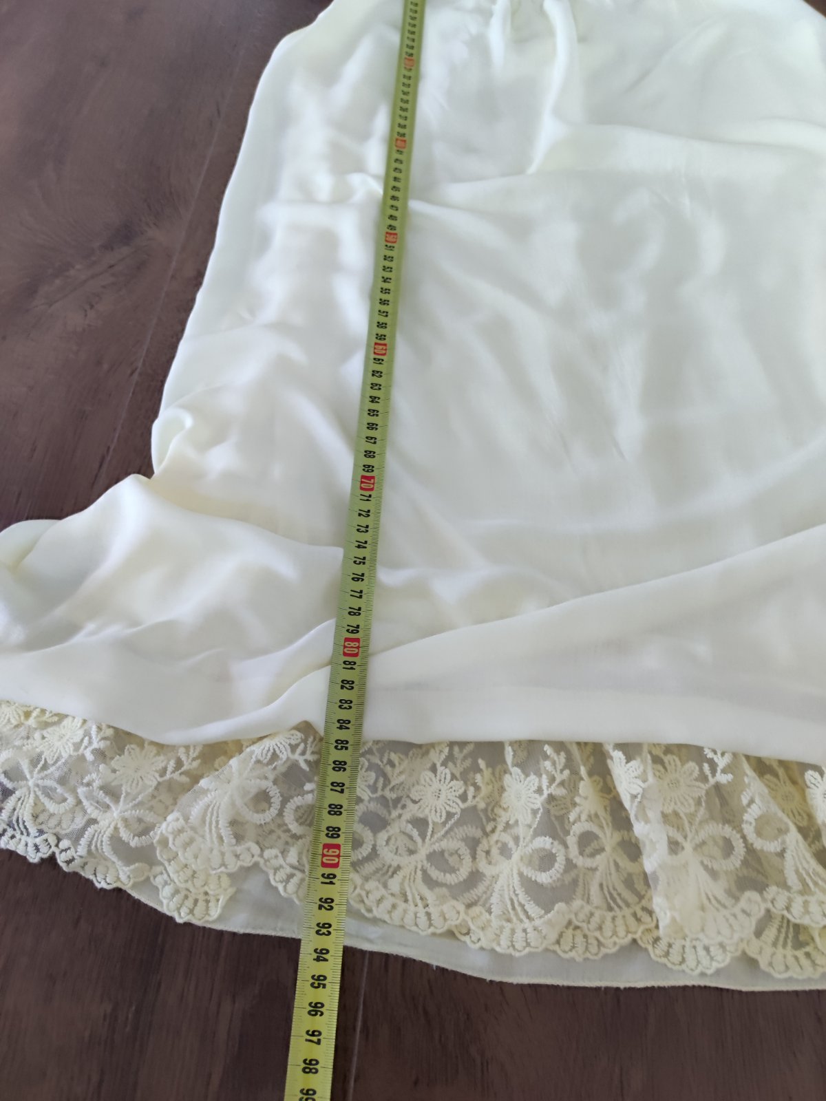 Raz oblečené, unahlena kúpa, inak pohodlné a na leto ako stvorené. Veľkosť nie je uvedena, podla mna tak po M.