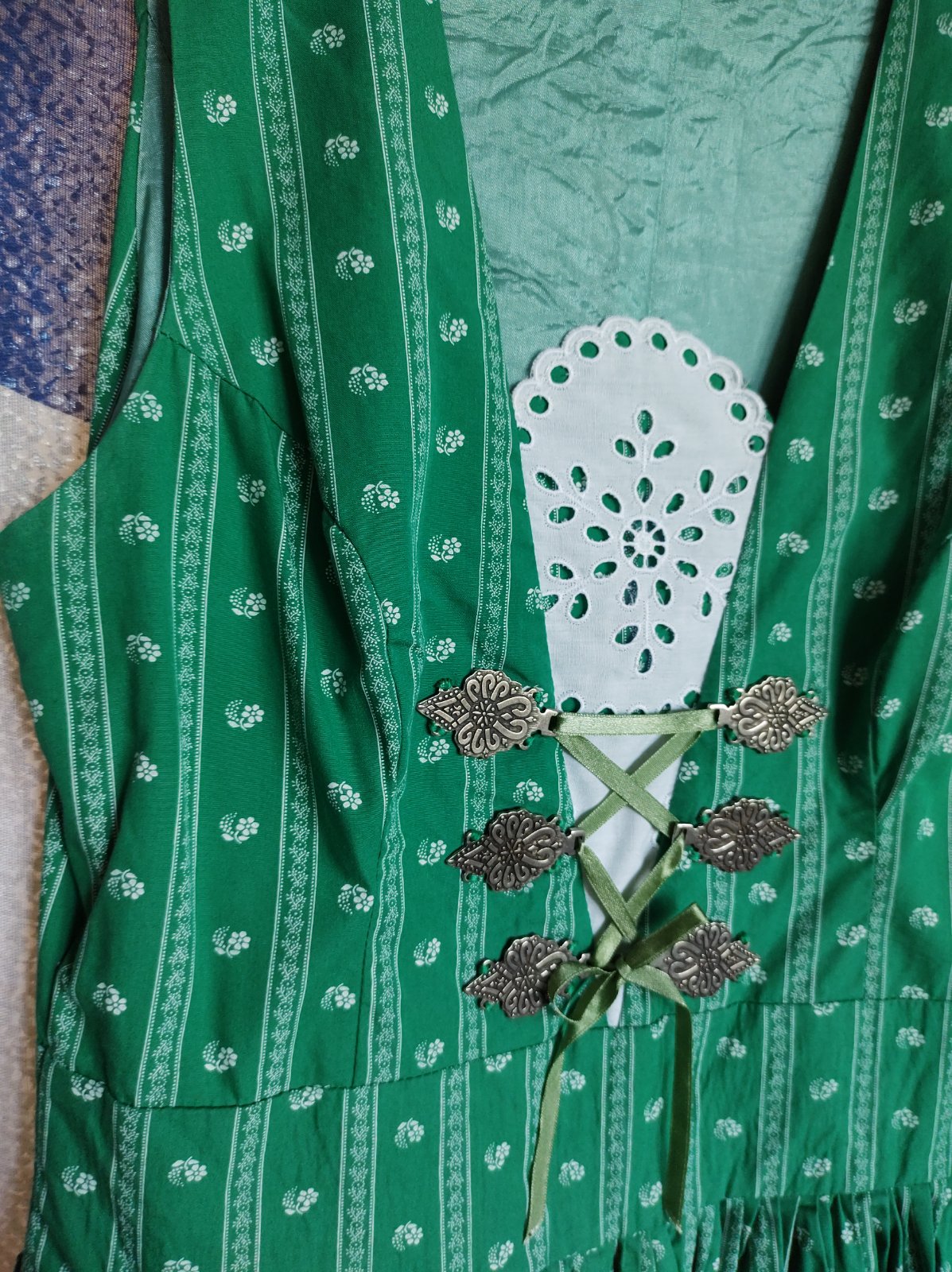 Predam mini saty, velmi pekne ukazu, farba taka tyrkysova, velkost uvadzana L, ale skor M, mensie L. Rozmery na foto. Vzadu male fliacky, neviem z coho, len lezali v skrini, v pripade zaujmu skusim...