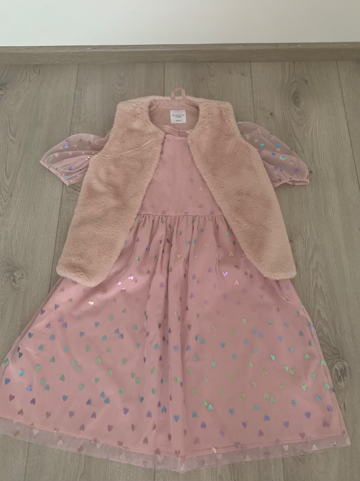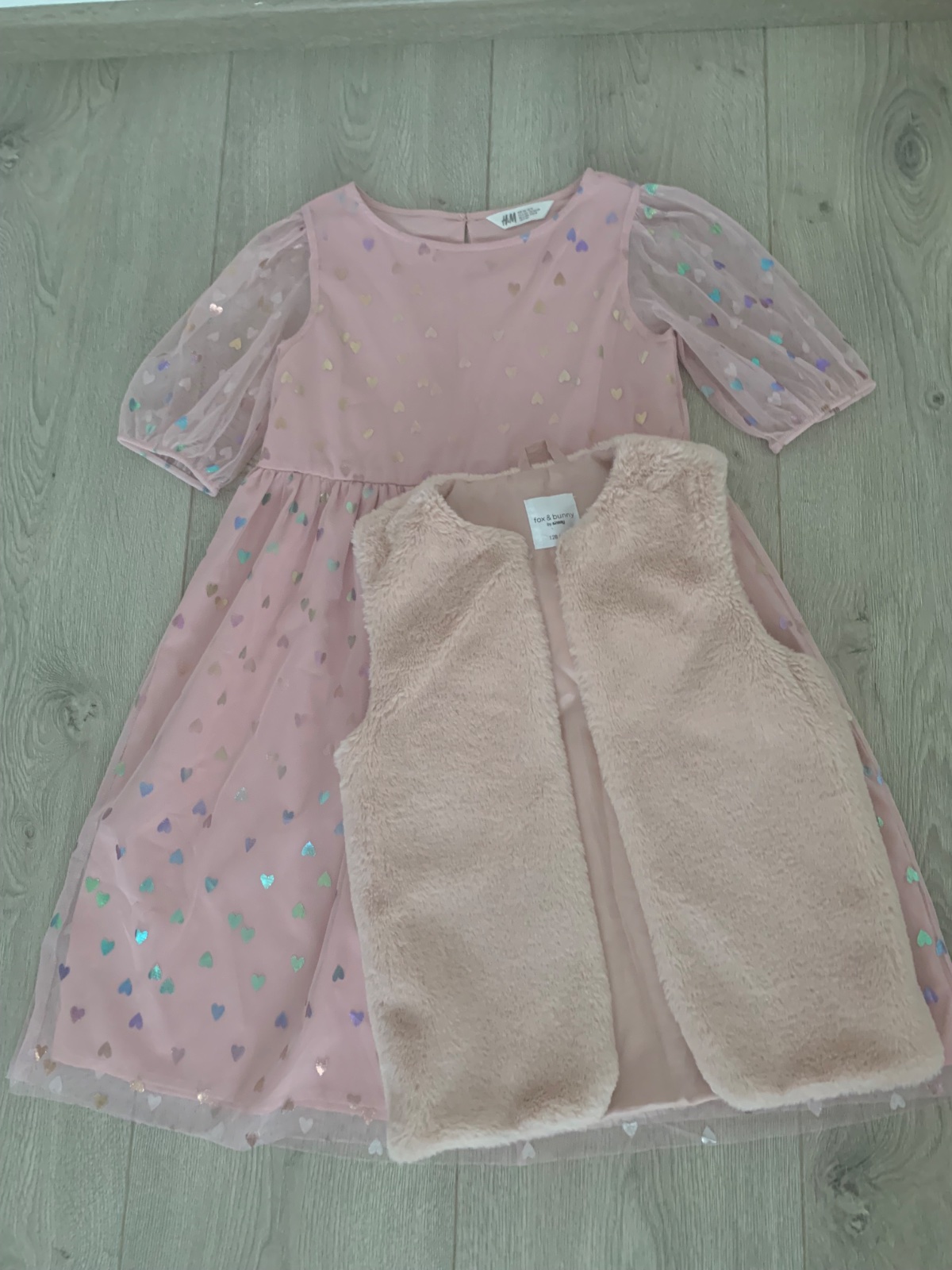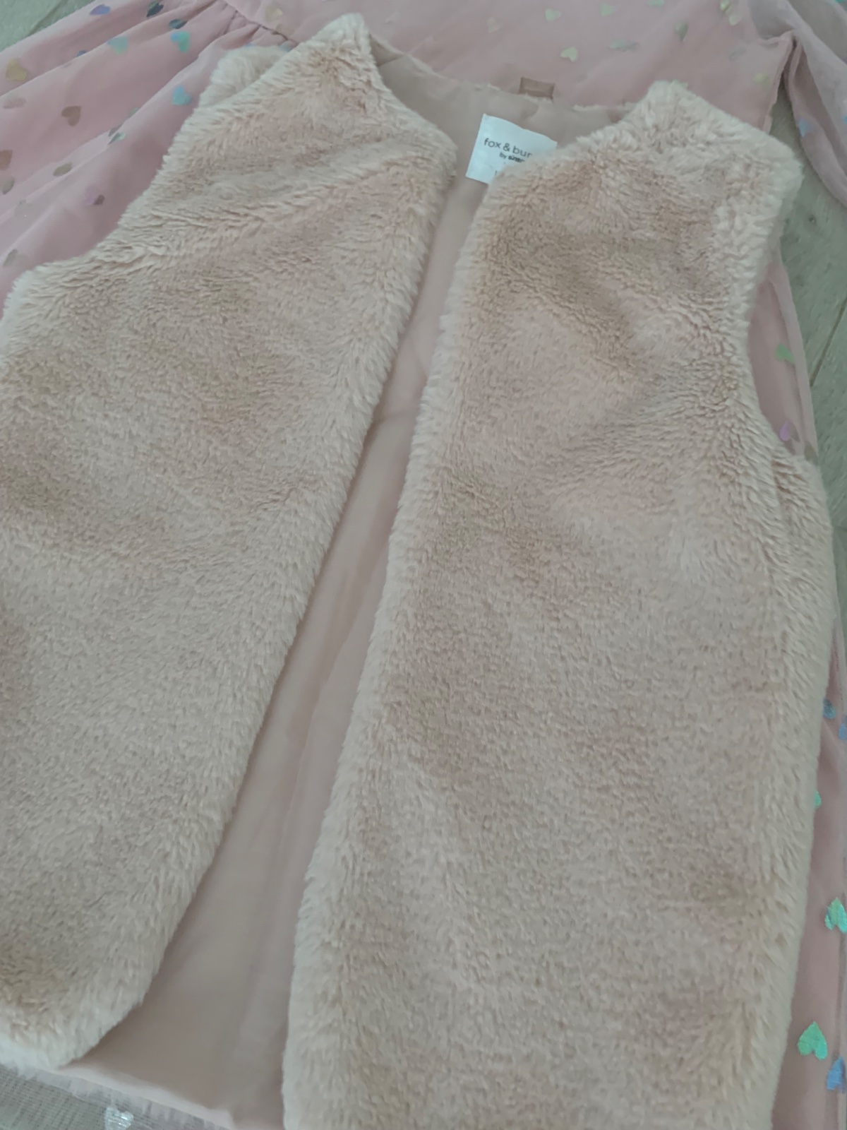 Staroružová jemná farba, srdiečka sú farebné. Vesta zo Sinsay v.128. Všetko krásne ako nové.