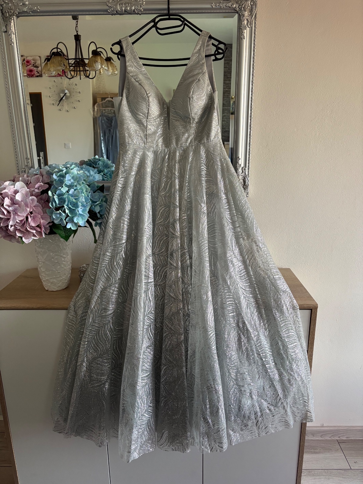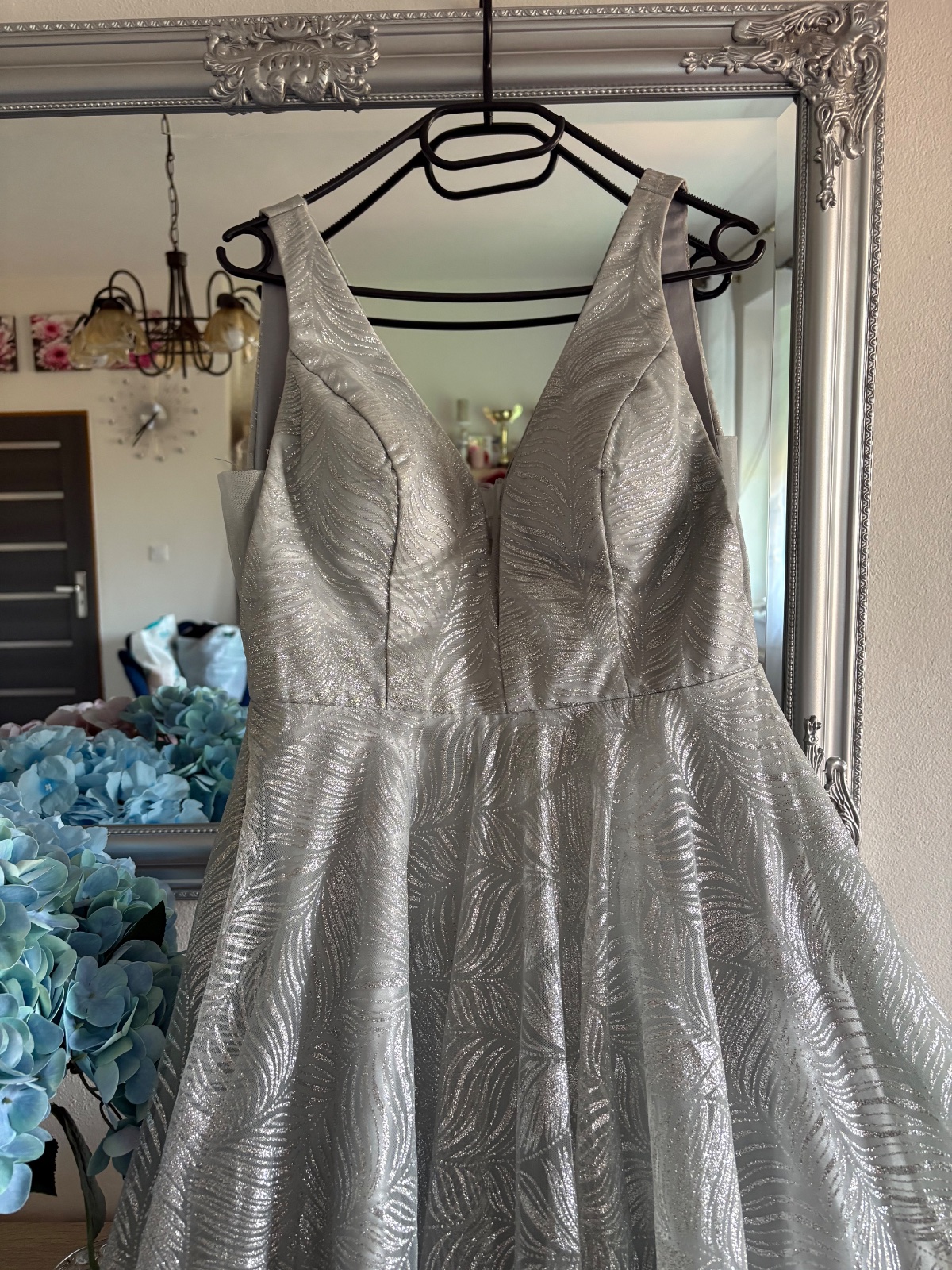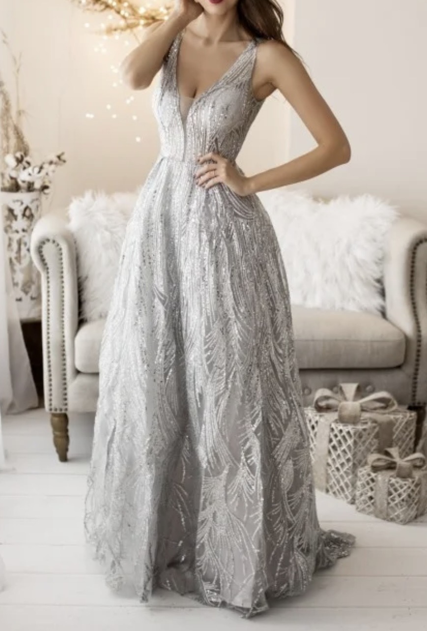 Ponúkam na predaj strieborné šaty. Šaty majú pri bližšom skúmaní miestami nie 100% potlač, cena prispôsobená, inak sú krásne.