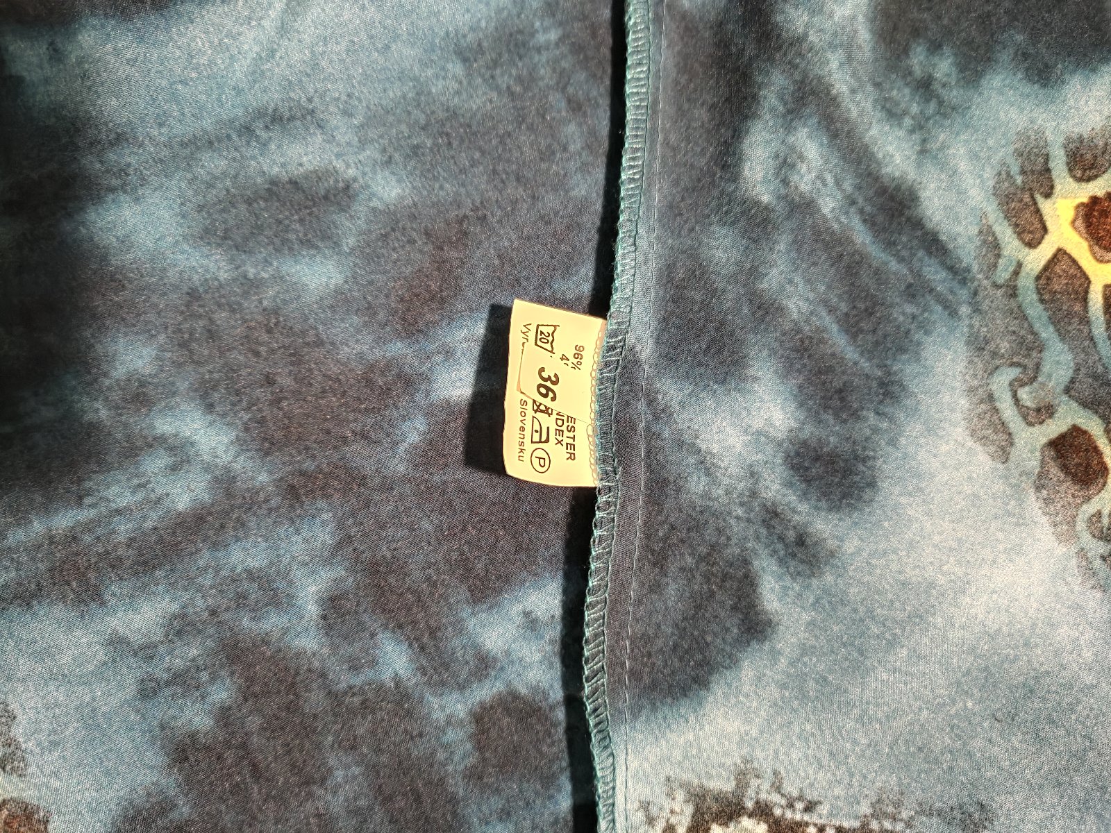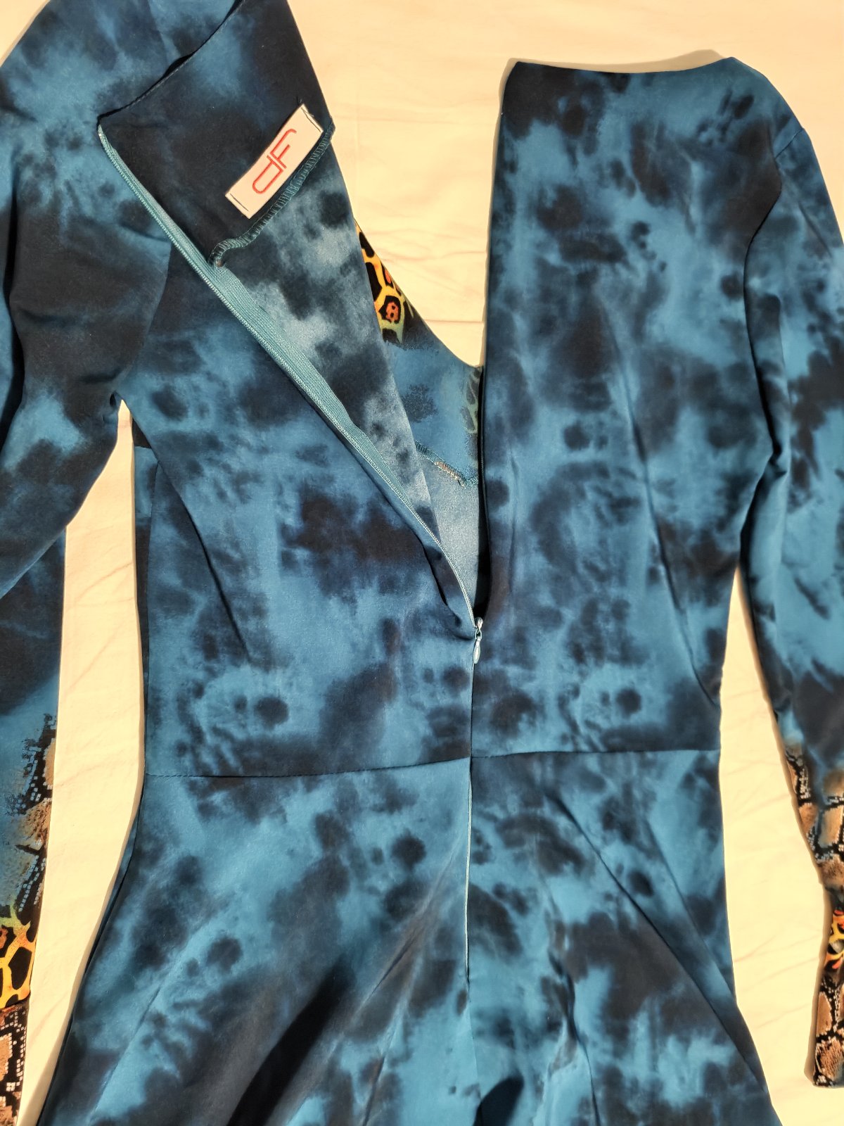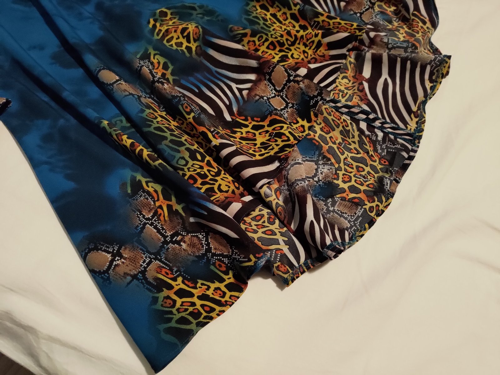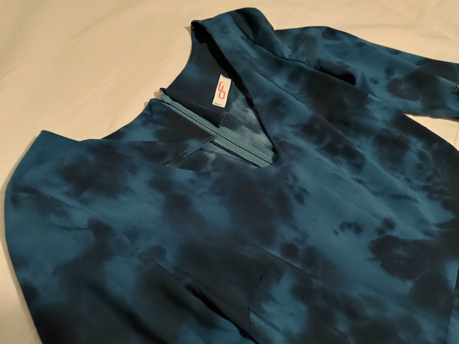 Sú elastické od pása sa voľne rozširujú. Vpredu kratšie (94 cm), vzadu dlhšie (105 cm). Rukávy sú dlhé na koncoch rozšírené (dĺžka 59 cm). Vzadu zapínanie na zips.