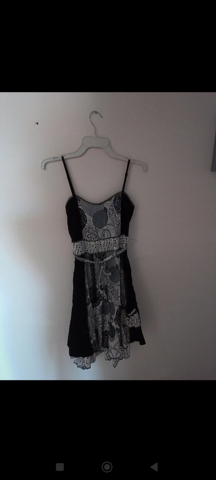 Veľmi dobrý stav, odporúčam na vyššiu postavu, uvedena v.10/M, ale podla mna skor S, saty maju vrecka, dĺžka 94, v podpazuší 46-50, cena:6€ +poštovné a balné. Dobierkou neposielam az po prevode na ...