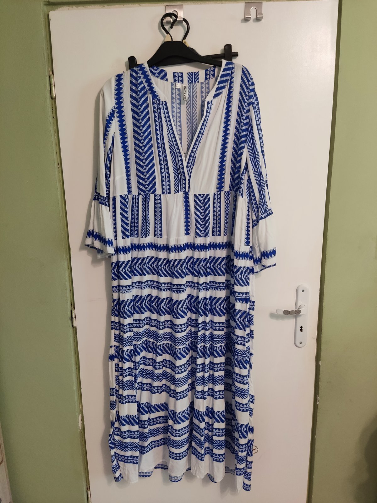 Krásne vzorované šaty. Veľ. 44/46 (prispôsobia sa). Neboli oblečené ani raz, len opraté. Veľmi príjemný materiál. Pozrite si aj moje ďalšie inzeráty.