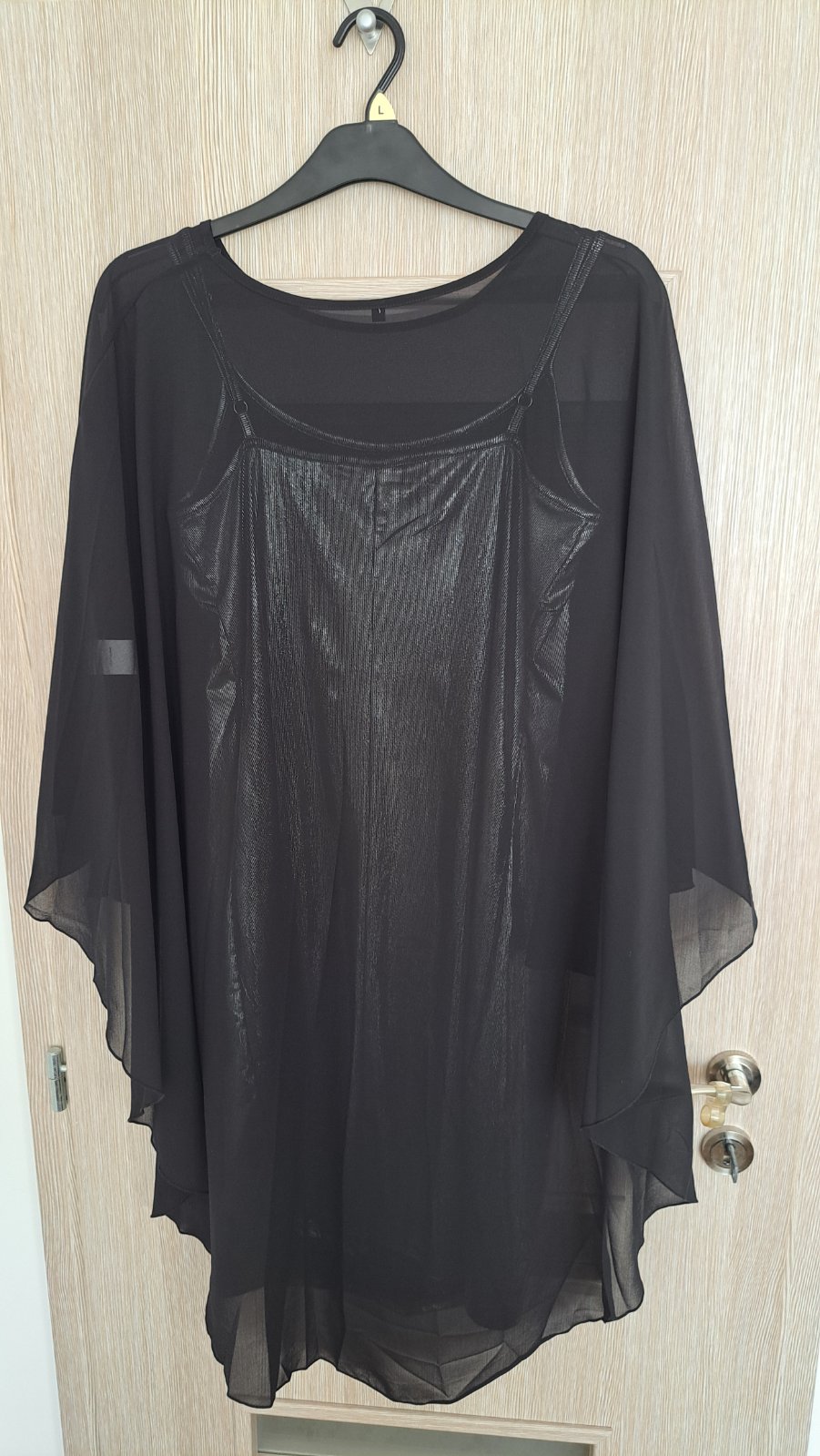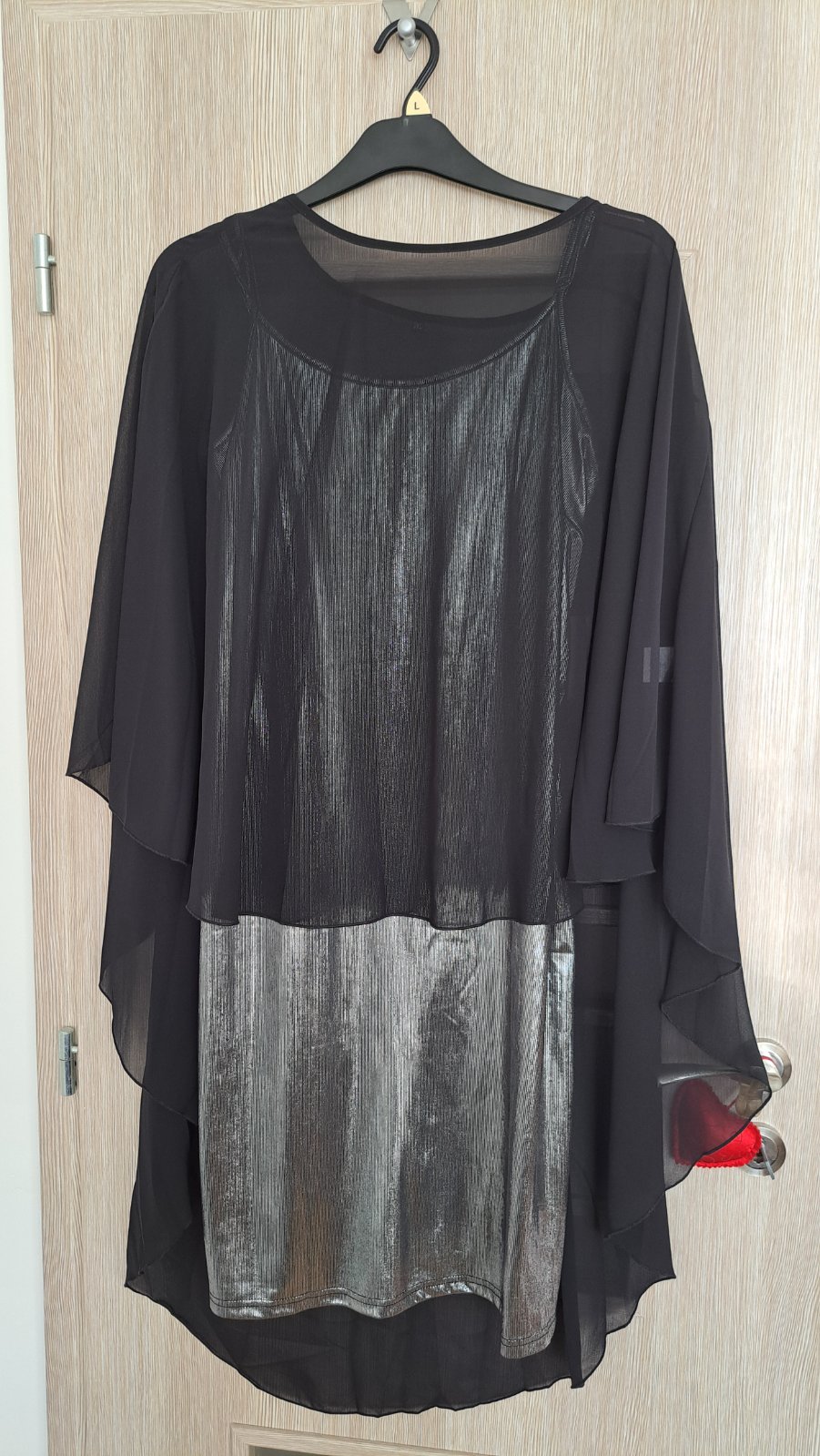 Krásne šaty aj so samostatnou pelerinkou,dá sa využiť aj k inemu oblečeniu. Žiaľ som príliš nízka s väčším bruškom ,mne nesadol strih.