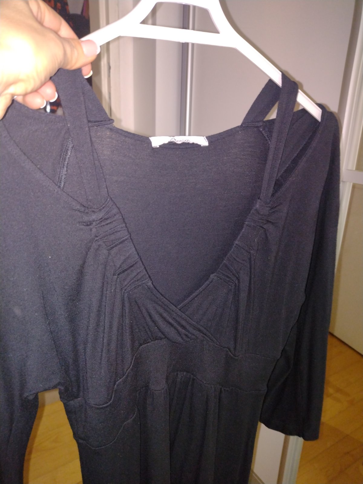 Darujem k nakupu nad 15€ dievcenske basic cierne saty zn.AMISU,vel.36/S, 3/4 rukav,bez chyb.