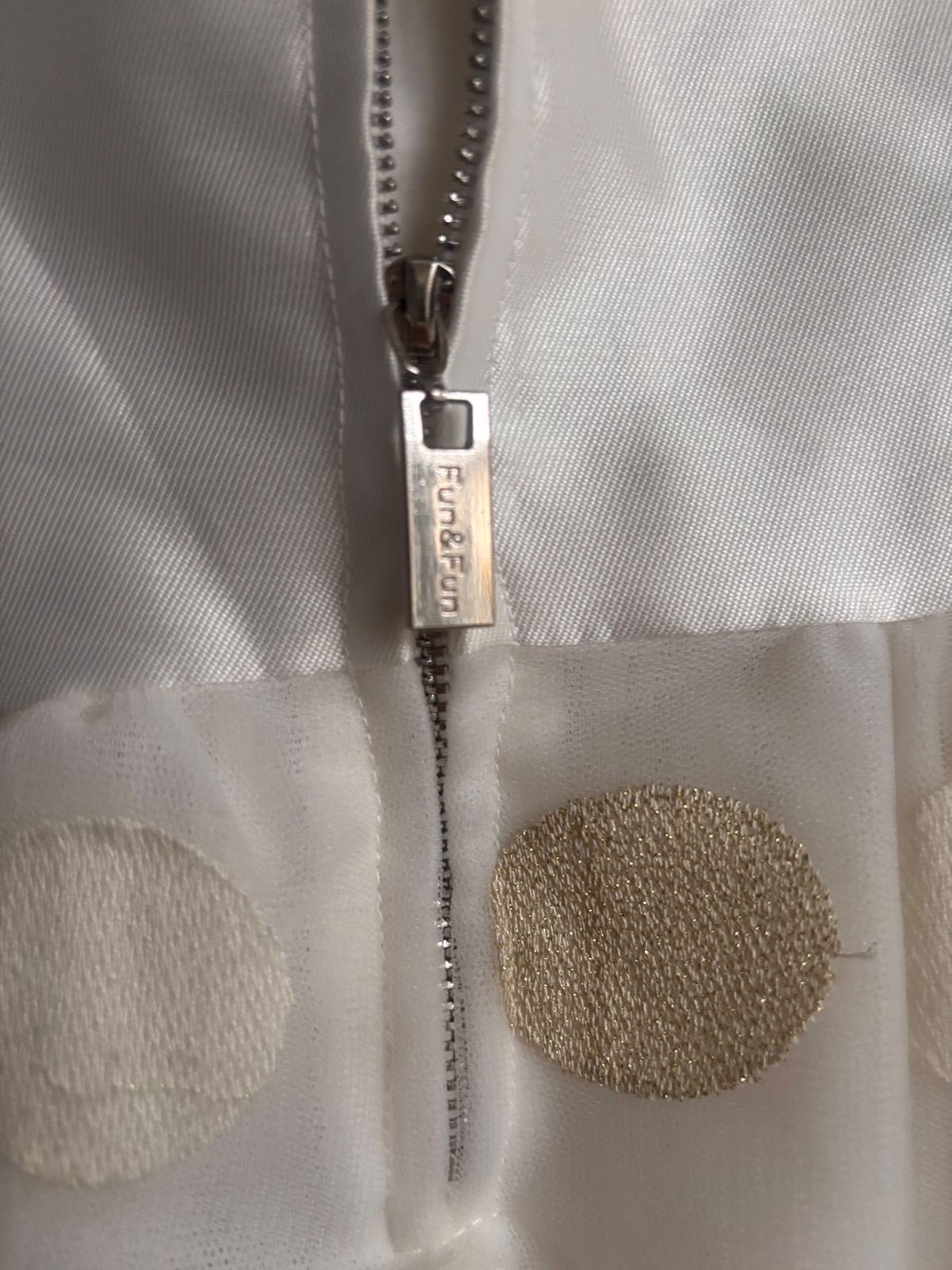nosené ale stále krasne, okúzľujúce šaty pre naozajstnú princeznú. talianska značka fun&fun, veľkosť uvedená 6A (naša 116, 6y) ale dcéra nosila ako 110. na guličkach sem tam vidieť nosenie ale celkovo su bez poskodenia. mozna dohoda na cene