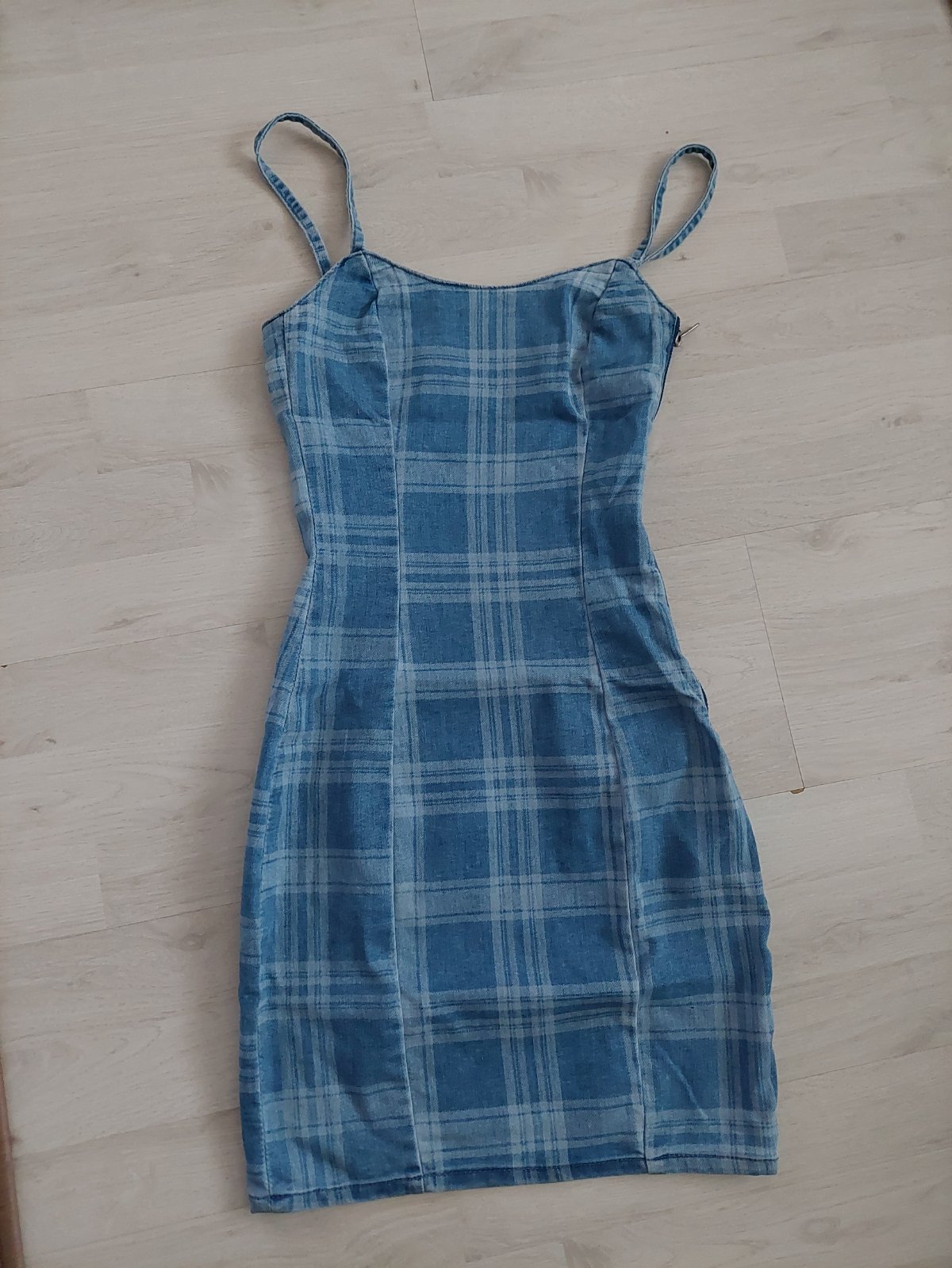 Výborný nosený, no nepoškodený stav. Vrchná časť elastická, sukňa je mäkká riflovina.