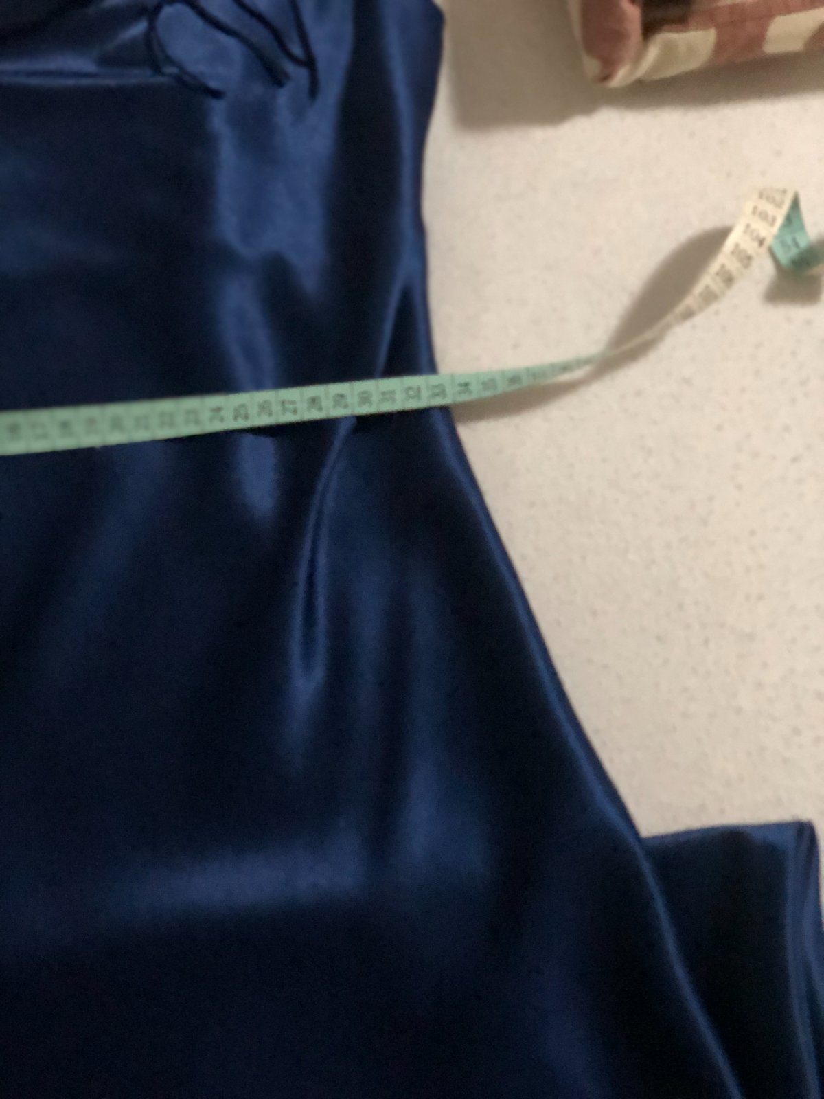 Šité na objednávku. Mala som 3krát oblečené. Sú bez poškodenia. Vrchná časť je lesklá látka - niečo ako satén. Vrch je podšitý. Spodná časť je padavá, trblietavá látka. Šírka pod pazuchami 2x4...