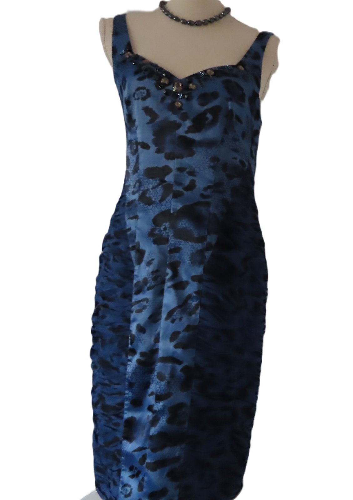 Šaty sú podšité, obsahujú elastan takže aj poddajné. Zapínaj sa na dlhý zips na chrbte.