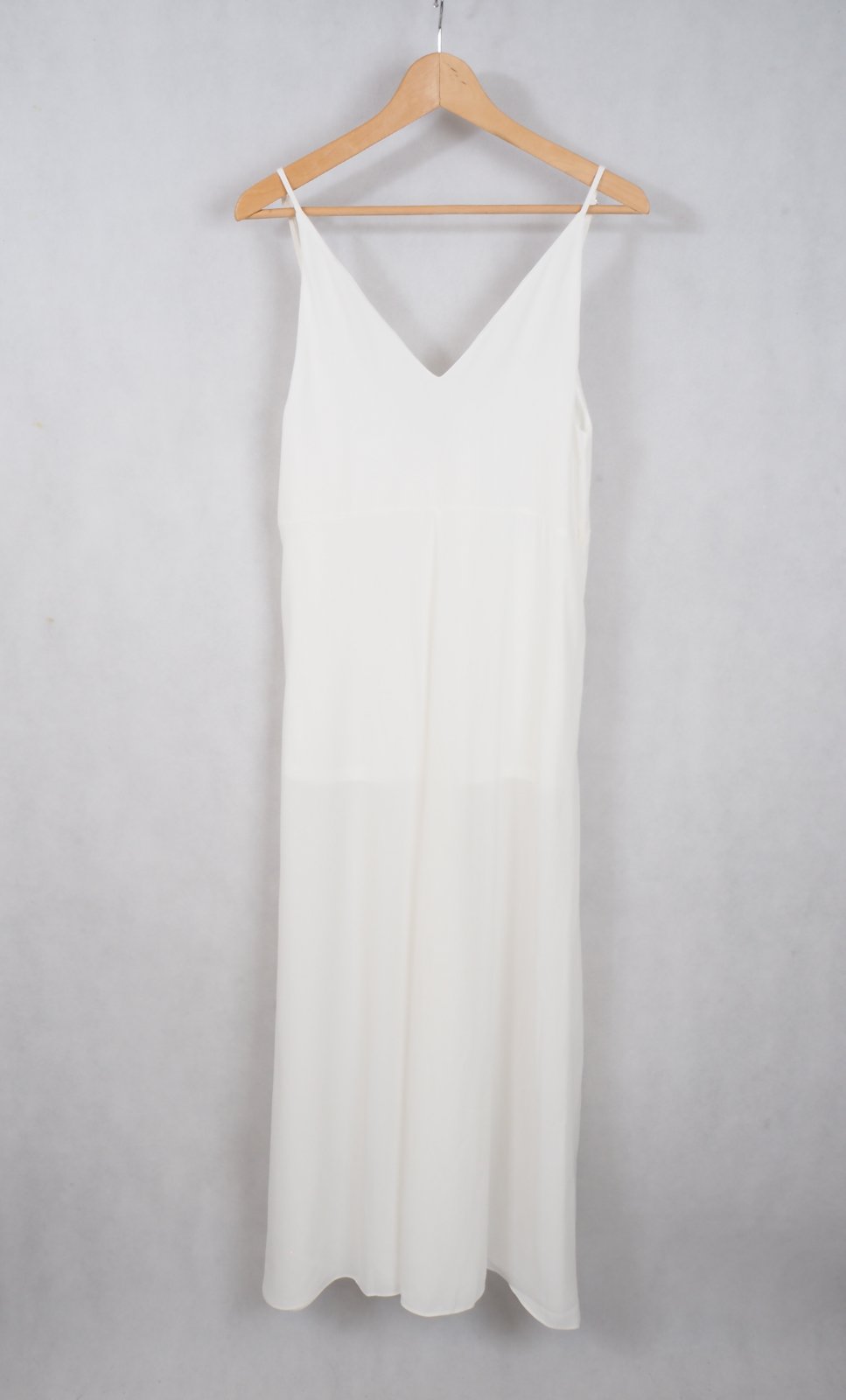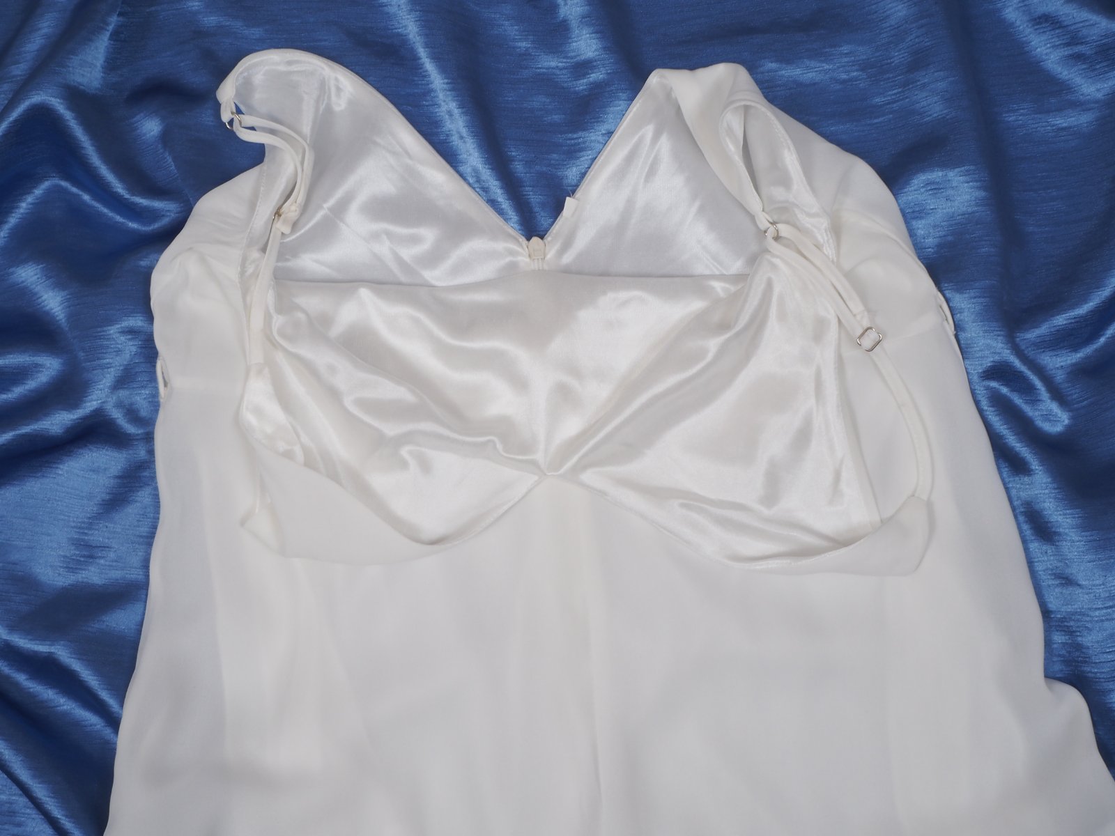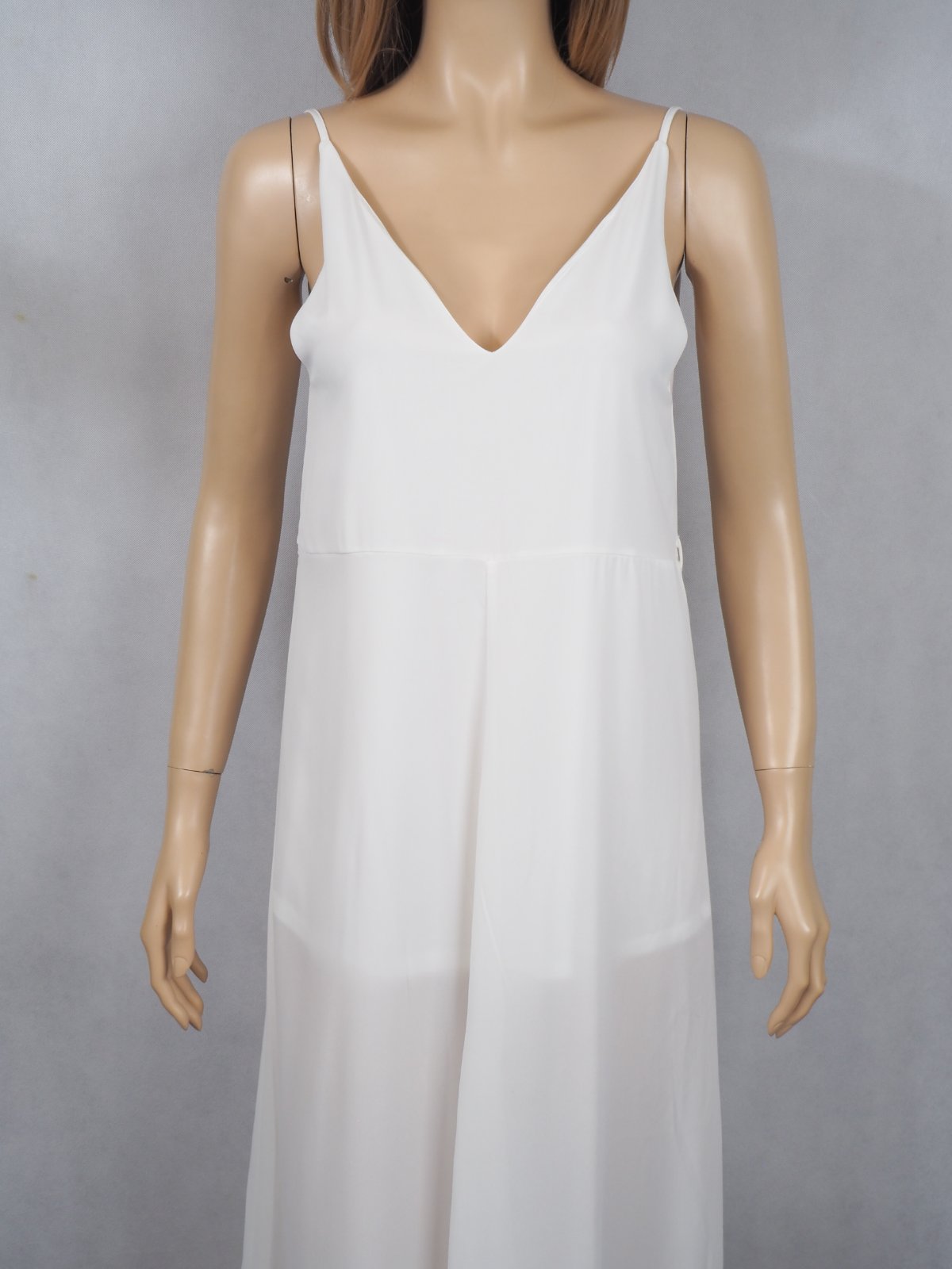Biele letné šaty s krátkou spodnicou, vpredu výstrih, regulovateľné ramienka, materiál 100% polyester, super stav.