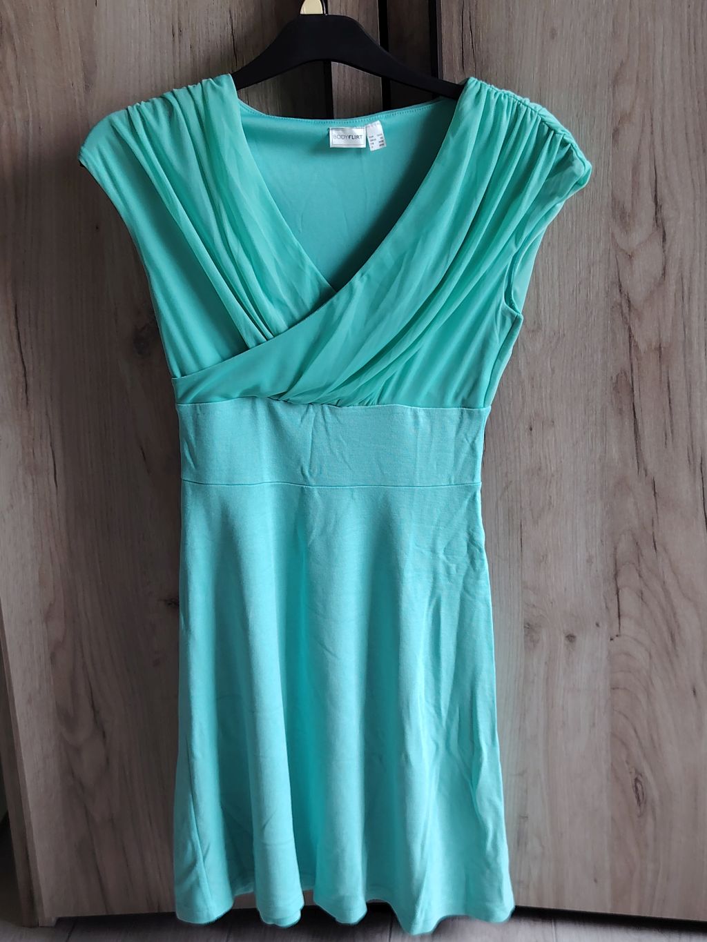 Raz oblečené šaty na svadbe. Farba je taká zvláštna zelená, niečo medzi zelenou a tyrkysovou. Veľmi pekne ukážu na postave. Vrch je taký šifónový, ale podšitý. Kupované v Bonprix. Veľkosť je písaná XS 32/34.