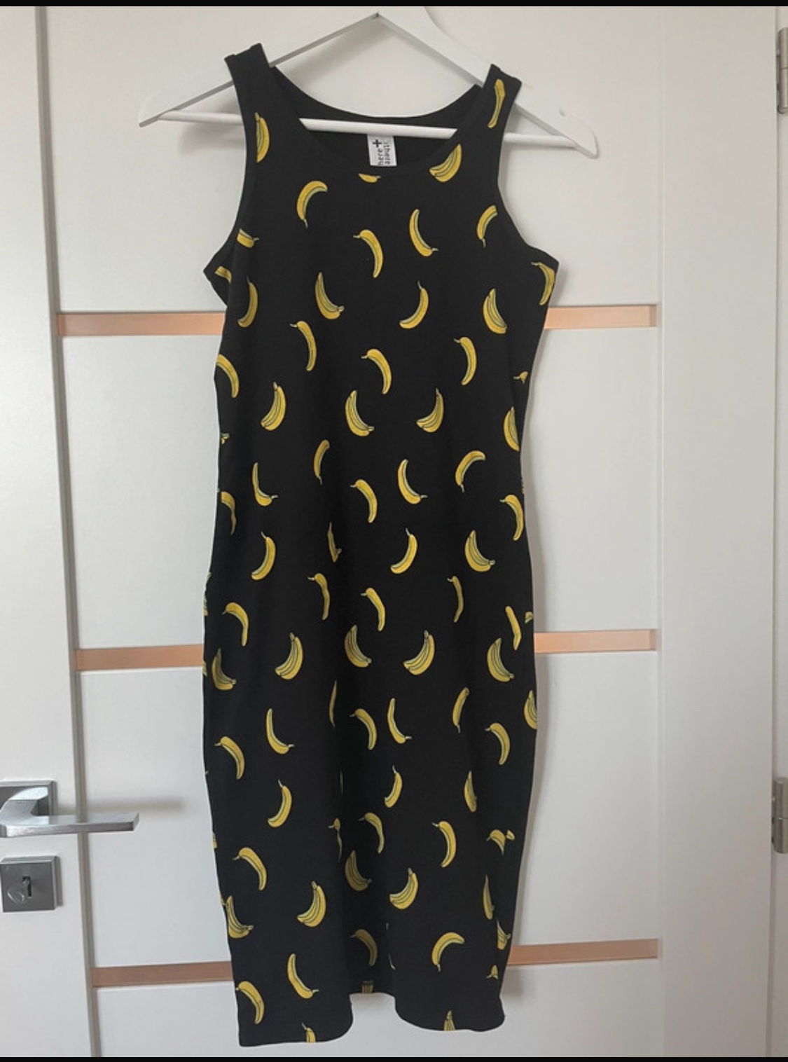 Veľkost-146/152, cierna so zltymi bananmi. Saty su elasticke/ bavlna elastan.(trickovina)