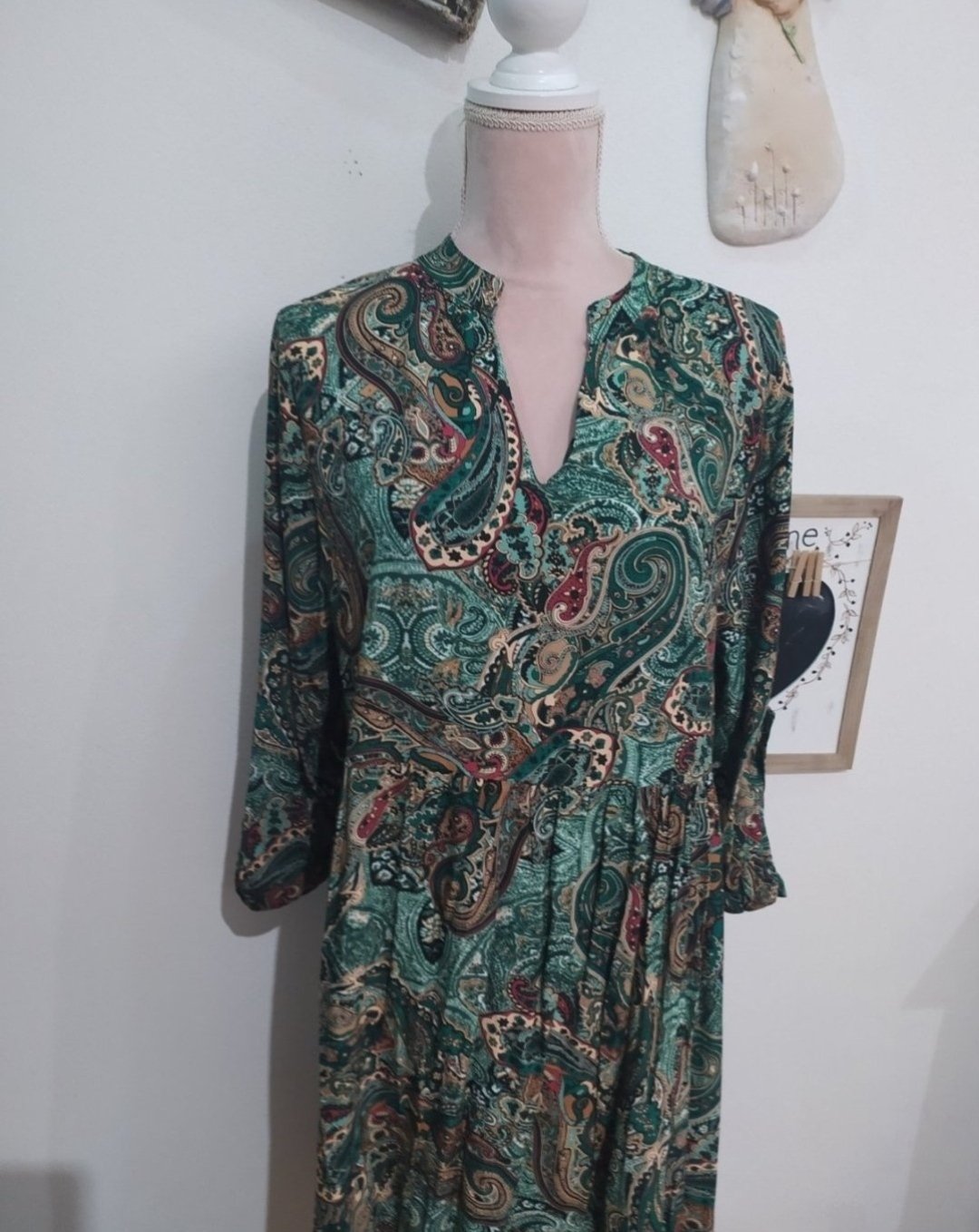 krasne tmavo zelene bluzkove saty . saty maju v pase gumicku takze sa prisposobia kazdej postave. z velkosti S sa natiahnu na XL a sedia nadherne
