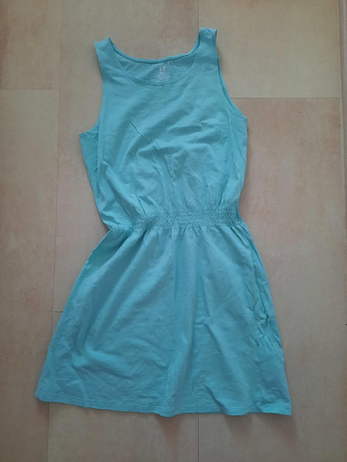 Pekné bavlnené letné šaty jemnej zelenkavej farby. V páse sú gumou nariasené (na pravej strane je šitie vypárané).