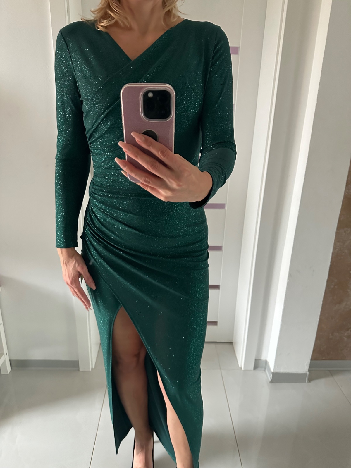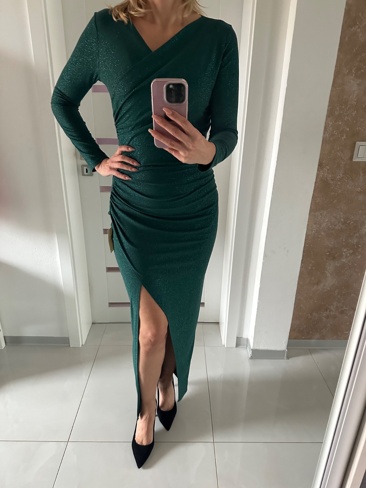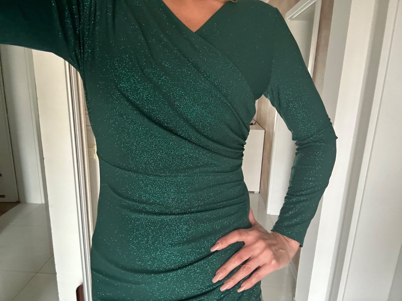 Oblecené raz, ako nové. Elastický materiál. Dlzka 153, prsia 47, pas 38 v klude.