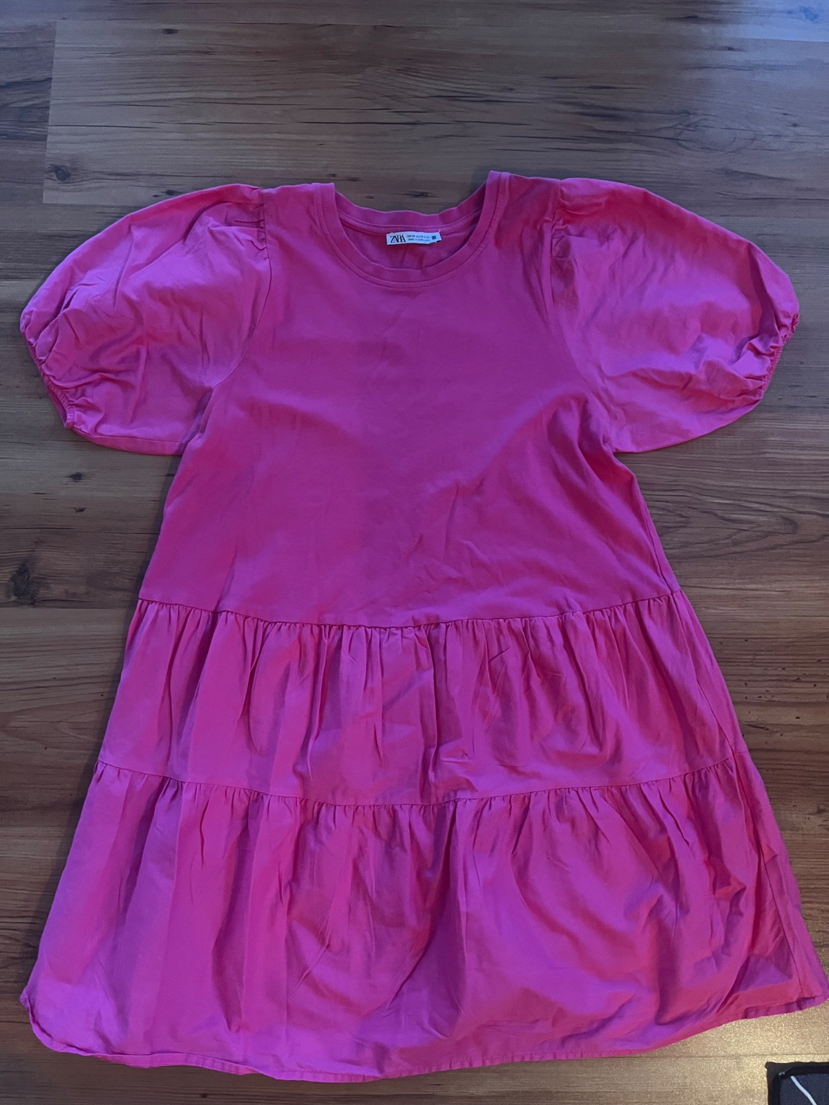 Predám v top stave cyklamenove saticky veľkosť xs, vrch je upletove, spodok a rukávy balonovy materiál, celková dĺžka; 80 cm