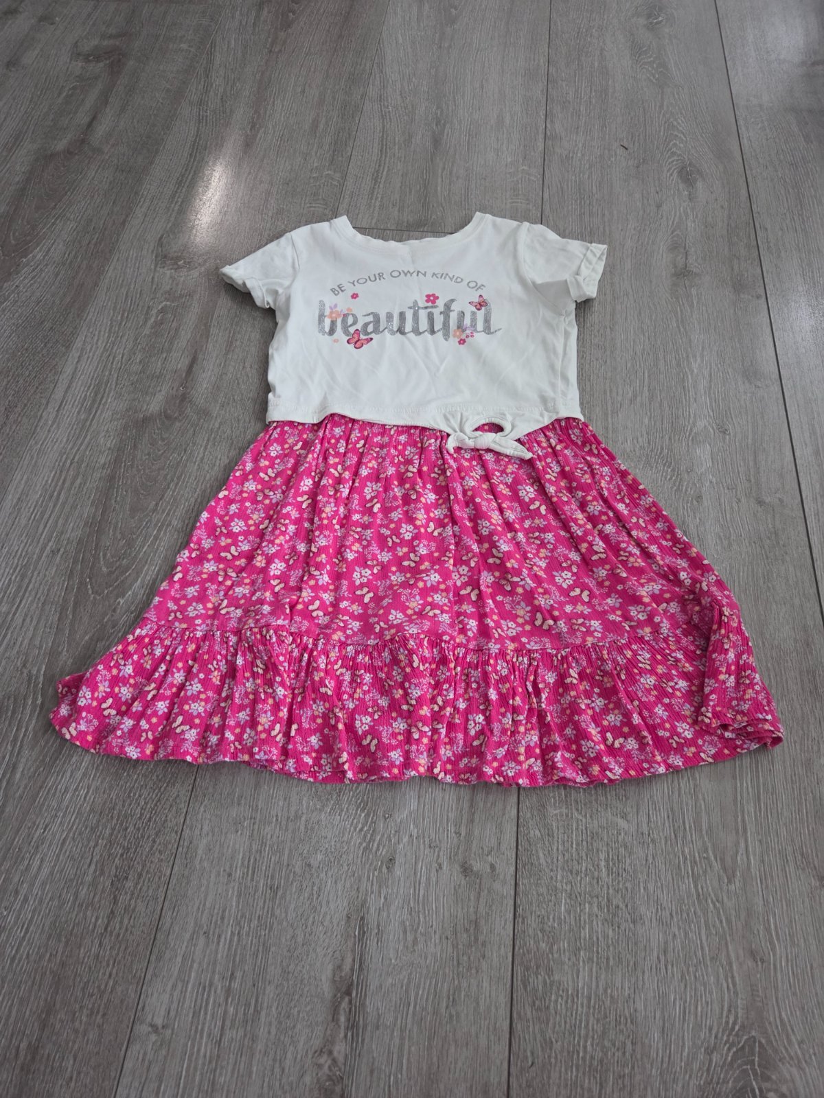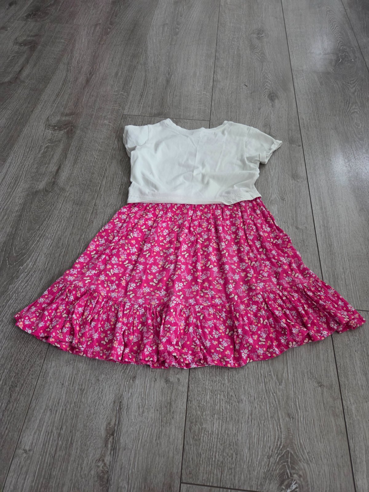 Krásne šatočky, veľmi dobrý stav. Na sukničke malá dierka, pri nosení nevidno. Farba sukničky neónová.