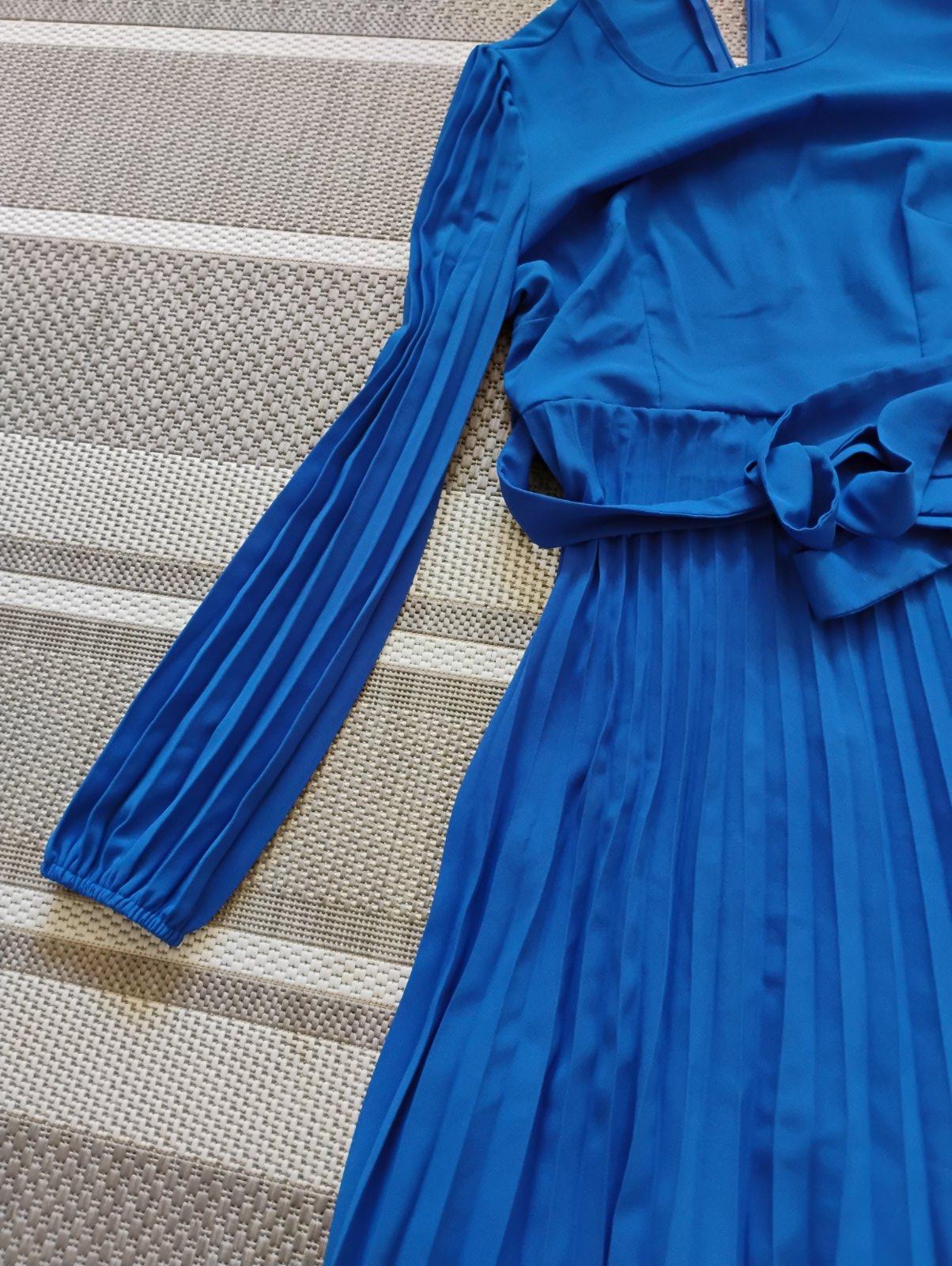 Dlhe modre riasene šaty, s