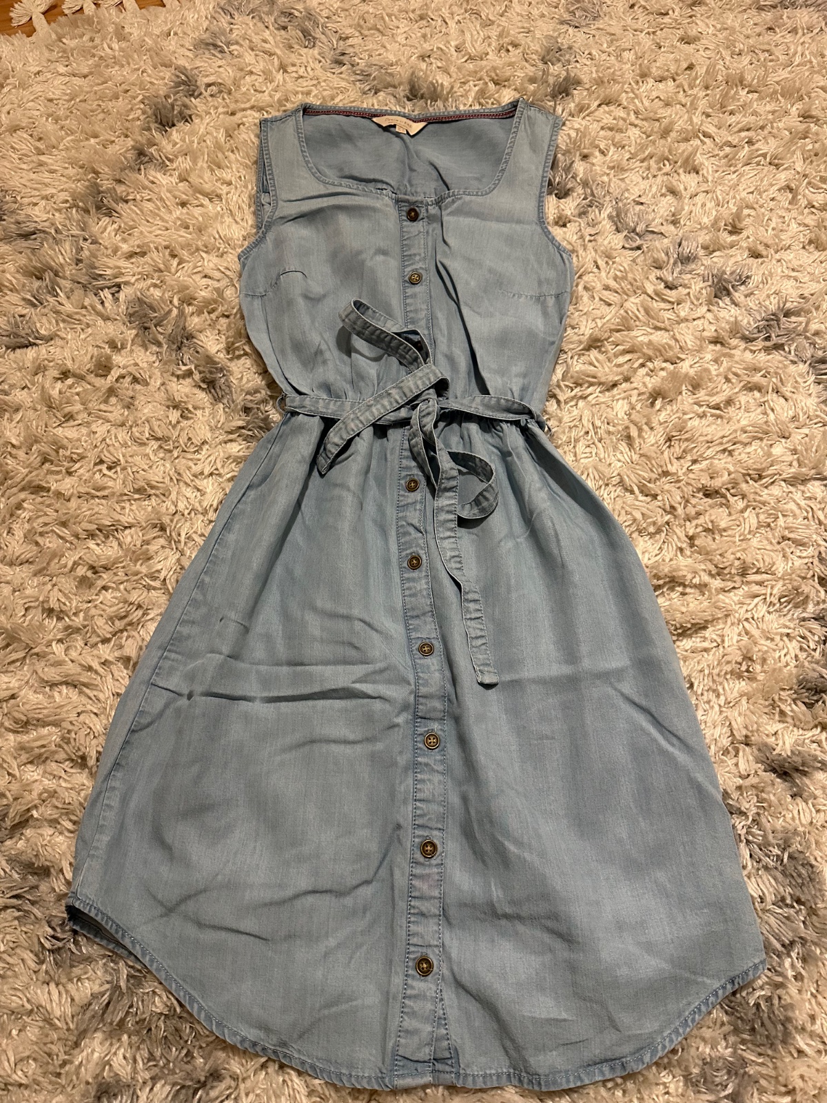 Dĺžka šiat je 72 cm. Šaty sú voľného strihu, denimovej farby. Zachovalé bez poškodenia, málo nosené