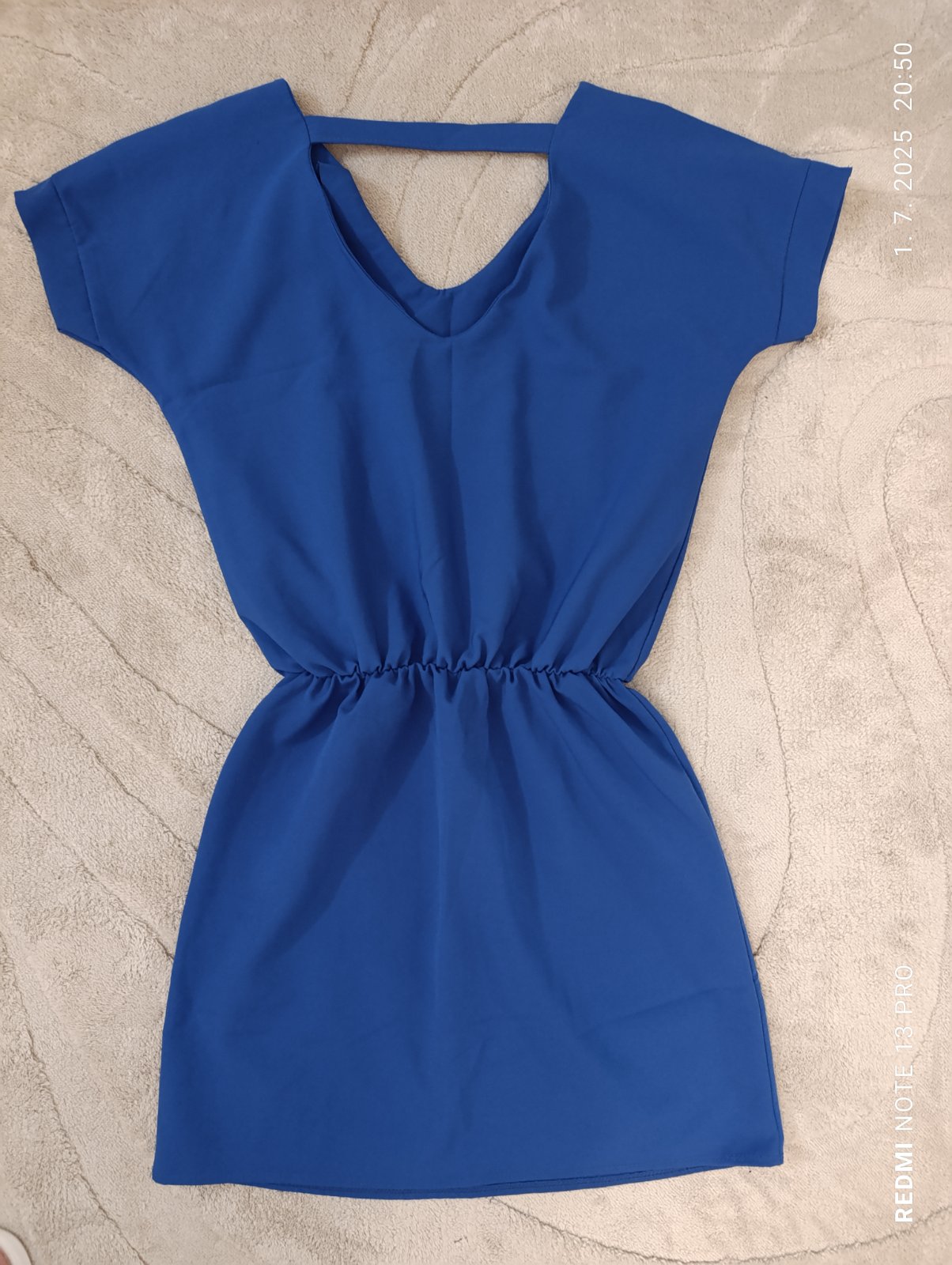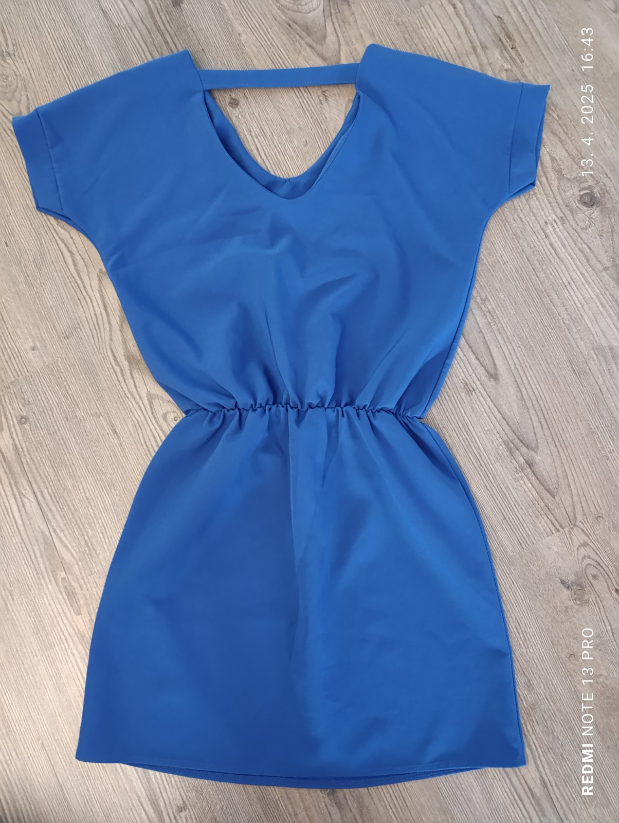Námornícke mini šaty, dva krat oblecene, sirka cez prsia je 43cm a dlzka 76cm