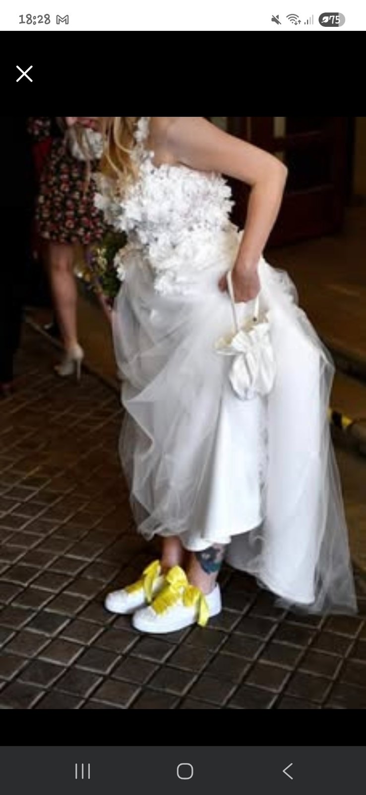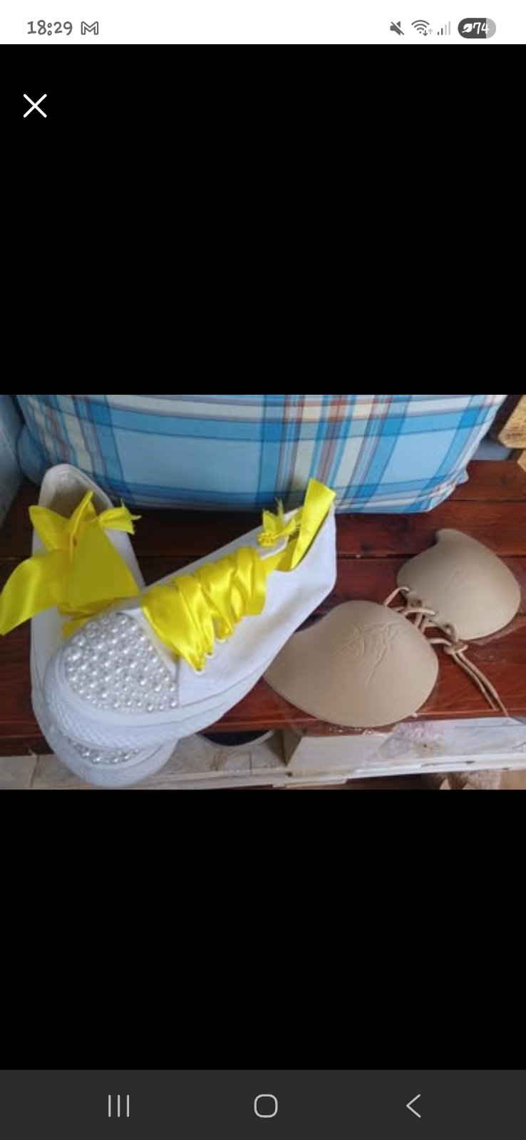 K satam dam ZADARMO svadobne tenisky - biele, spicka polepena perlickami, so zltou stuzkou, ktora sa da vymenit, vel. 40 a