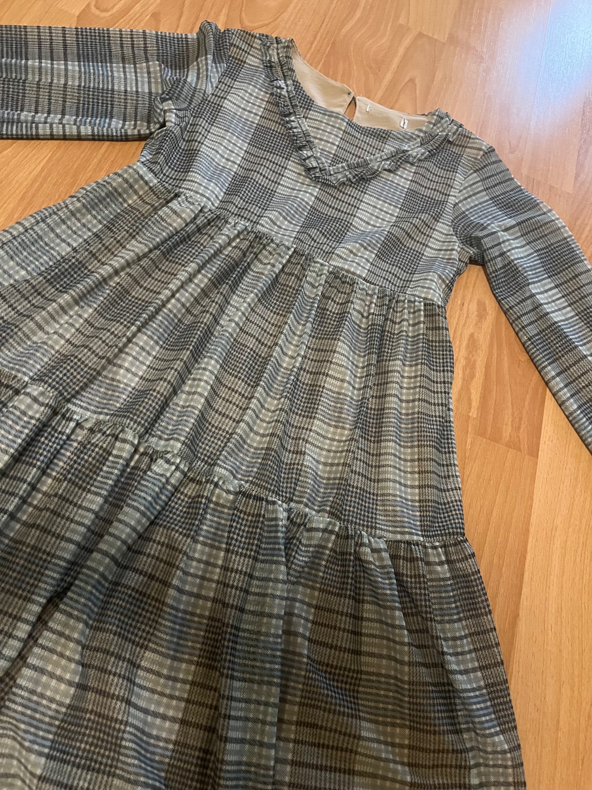 Zaujímavé saty s kvetmi. Rukávy sú sietkovane. Celková dĺžka 73cm Obvod hrude 68cm
